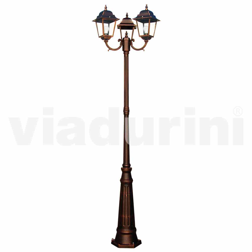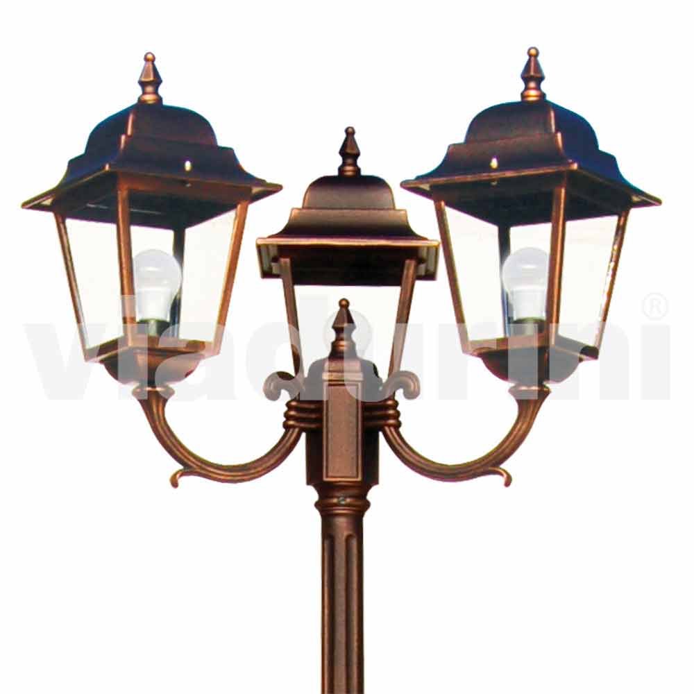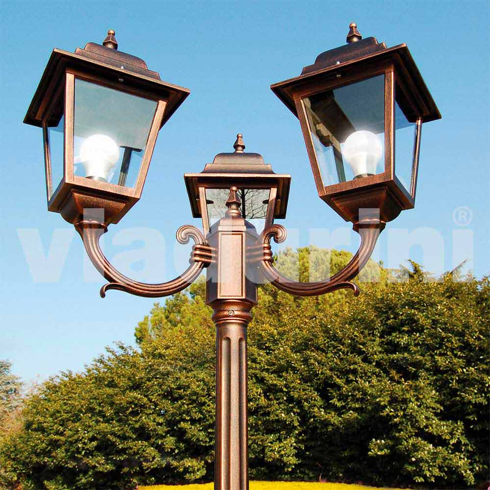 Klassischer Außenlaternenpfahl aus Aluminium, hergestellt in Italien, Aquilina Aquilina ist eine dreiflammige Gartenlampe, die in Italien handgefertigt wird und aus hochwertigen Materialien besteht: Struktur aus Aluminiumdruckguss und Glasdiffusor erhältlich: transparent oder sandgestrahlt.