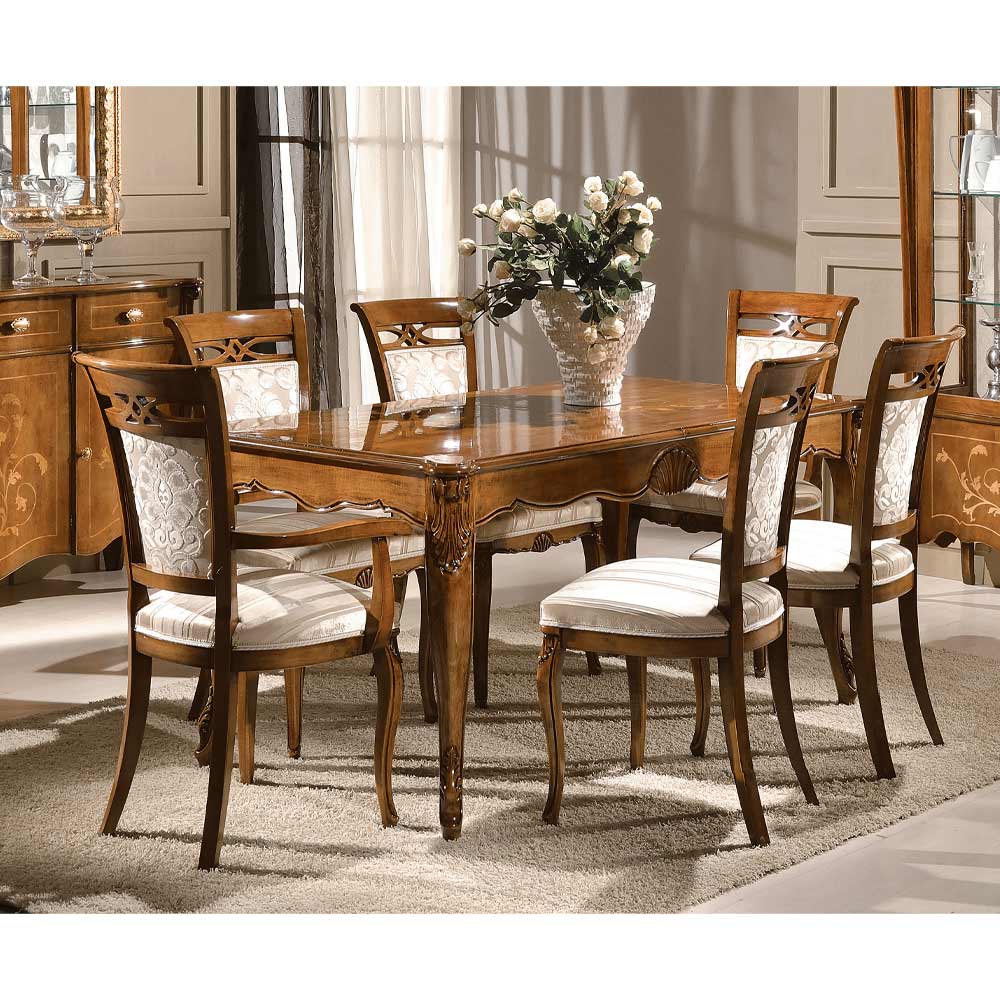 Klassischer Esszimmerstuhl aus Nussbaum oder weißem Holz Made in Italy.