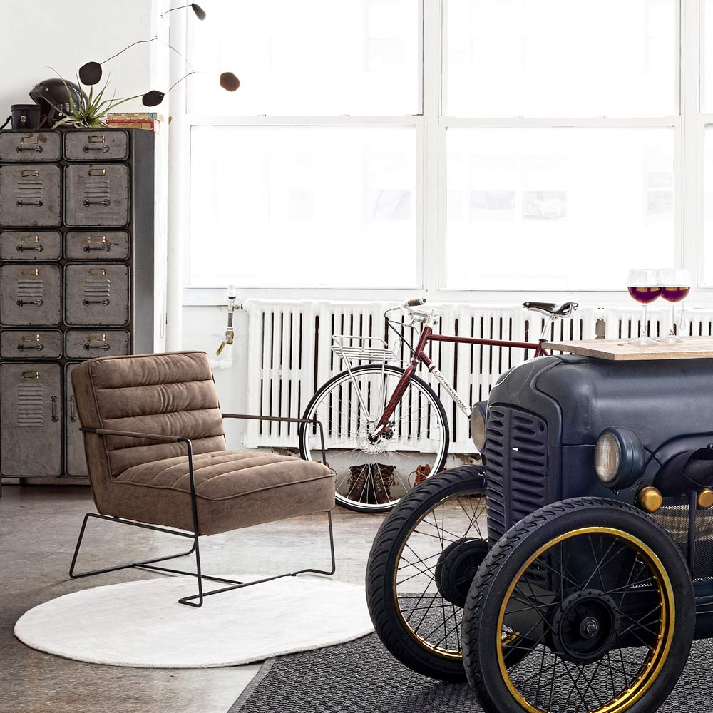 Klassischer Sessel aus Stahl und Kunstleder Braun oder Schwarz Design - Kendy