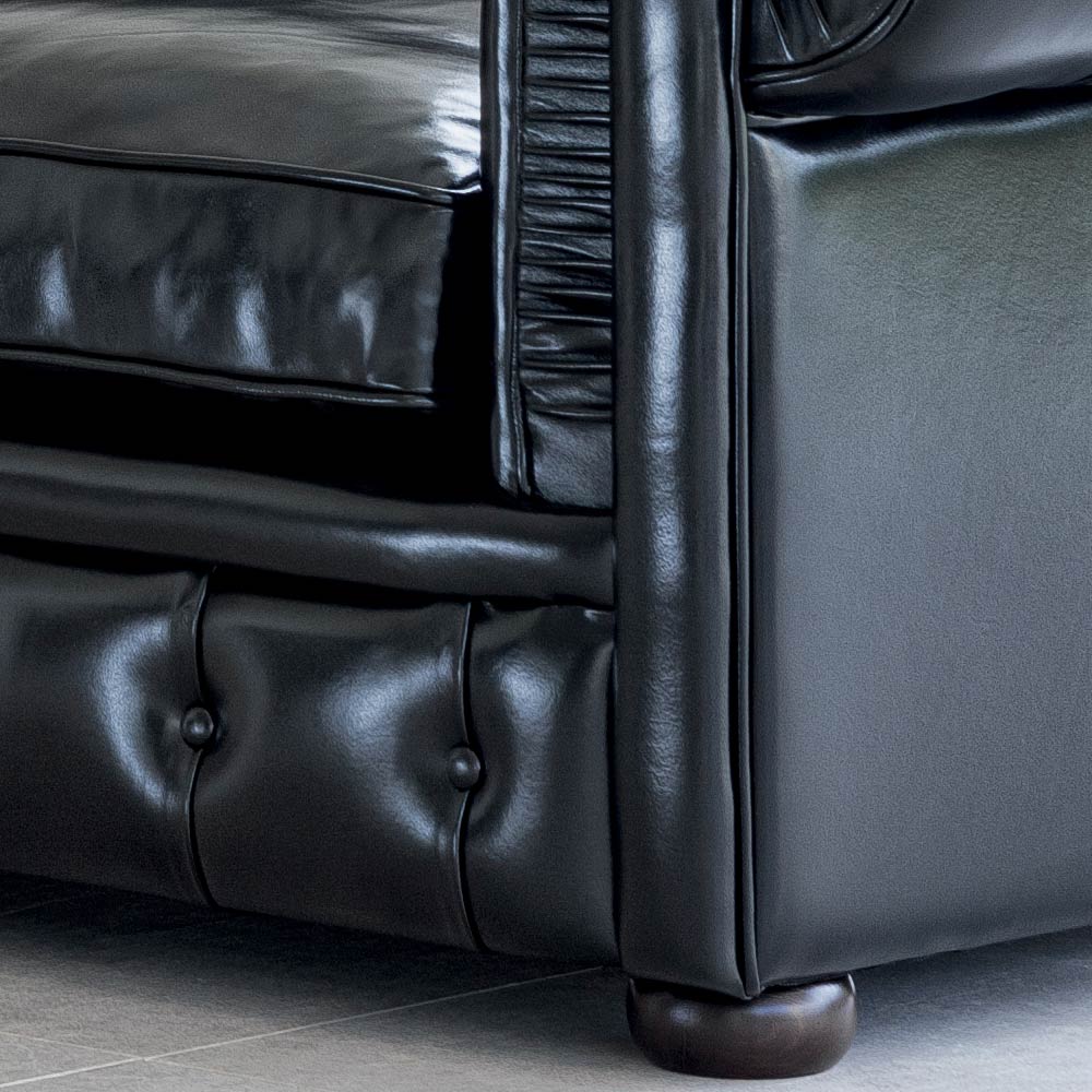 Gänsedaunen und Polyesterfaser . Die Polsterung der Rückenlehne besteht aus hochdichtem Polyurethanschaum. Die Füße bestehen