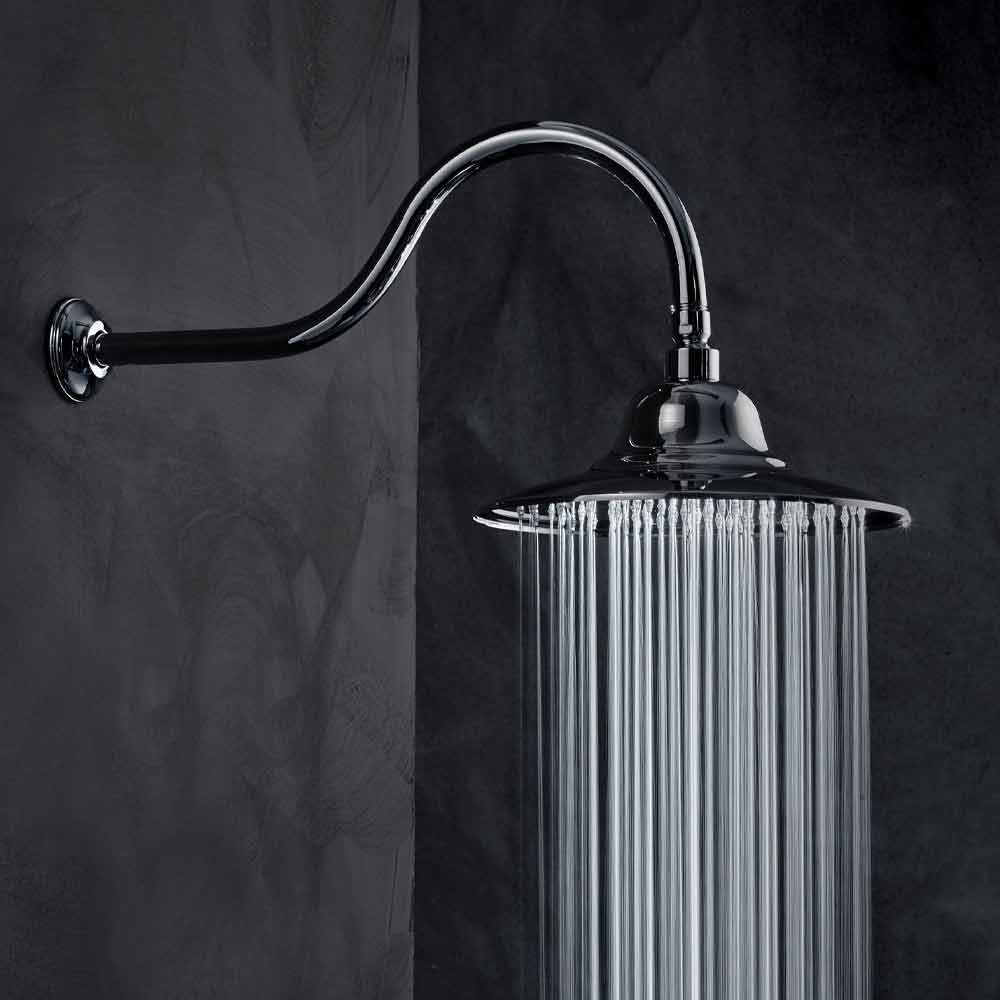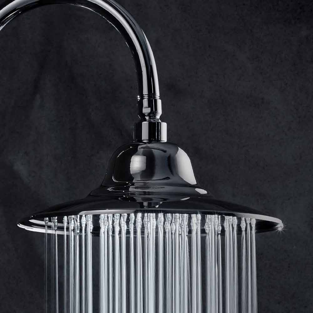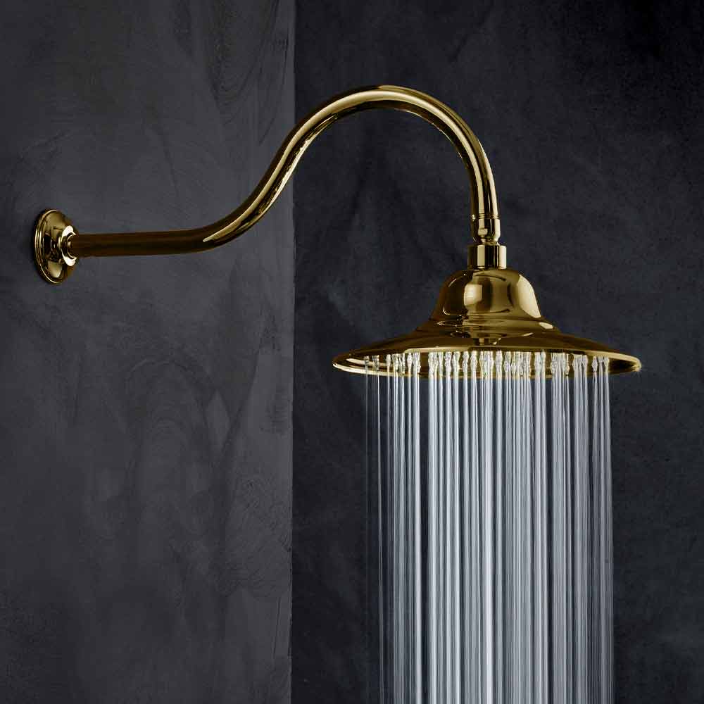 - gewölbter Duschkopf aus Messing;
