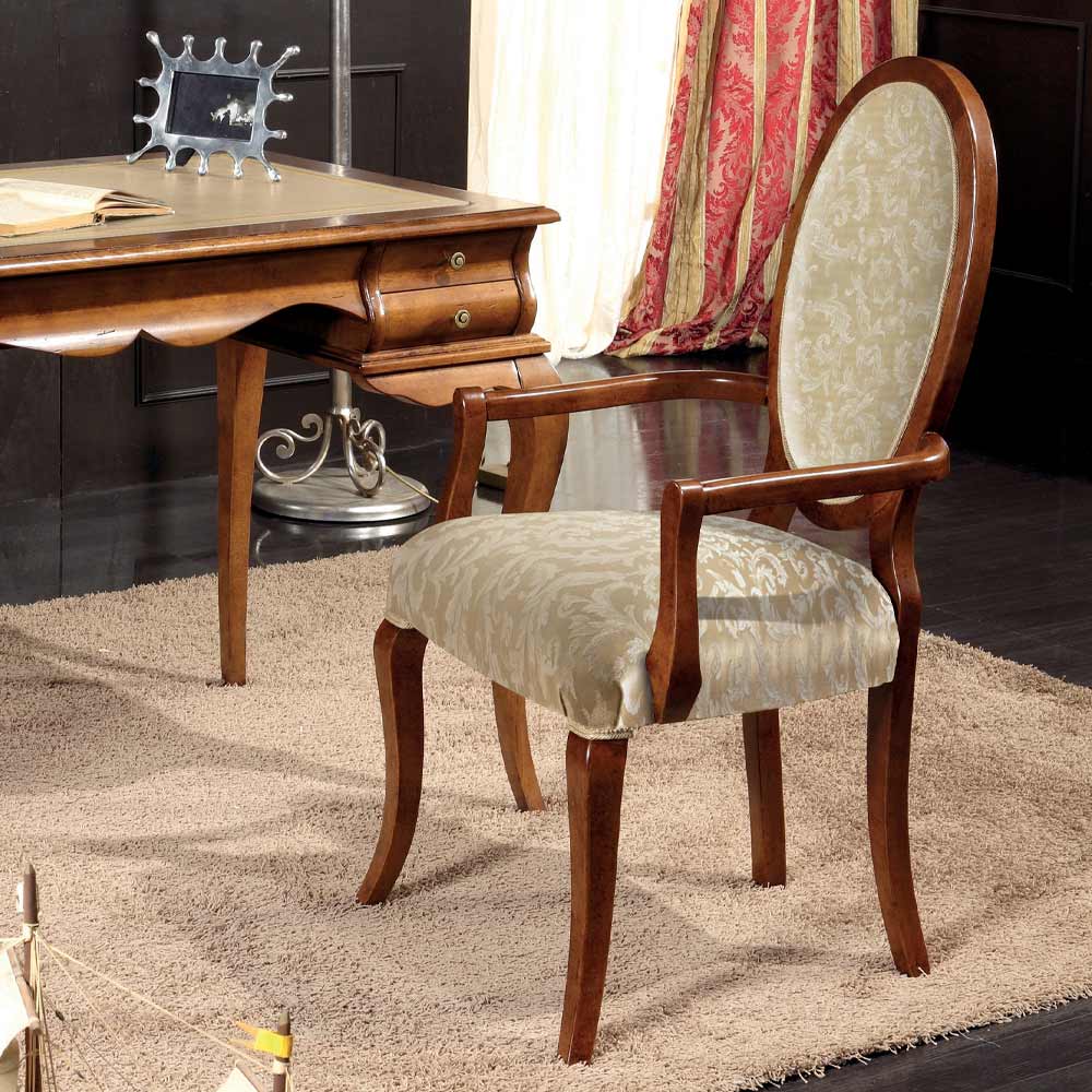 Esszimmerstuhl im klassischen Stil aus Holz und Stoff Made in Italy.