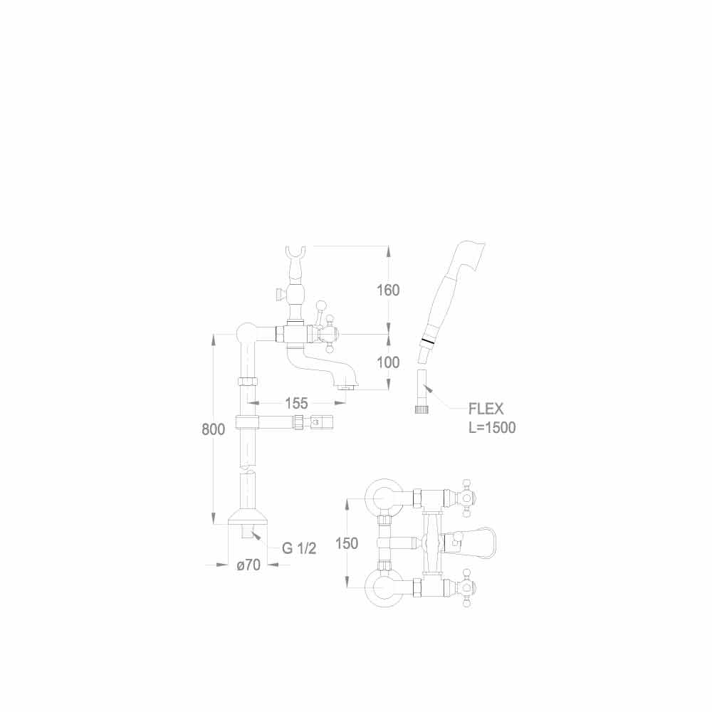 Externe Badarmatur an Bodensäulen mit Umstellung und Duplexdusche Made in Italy.