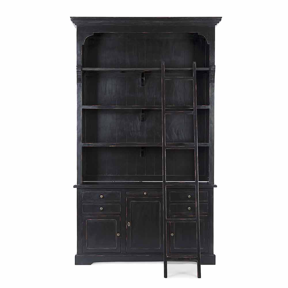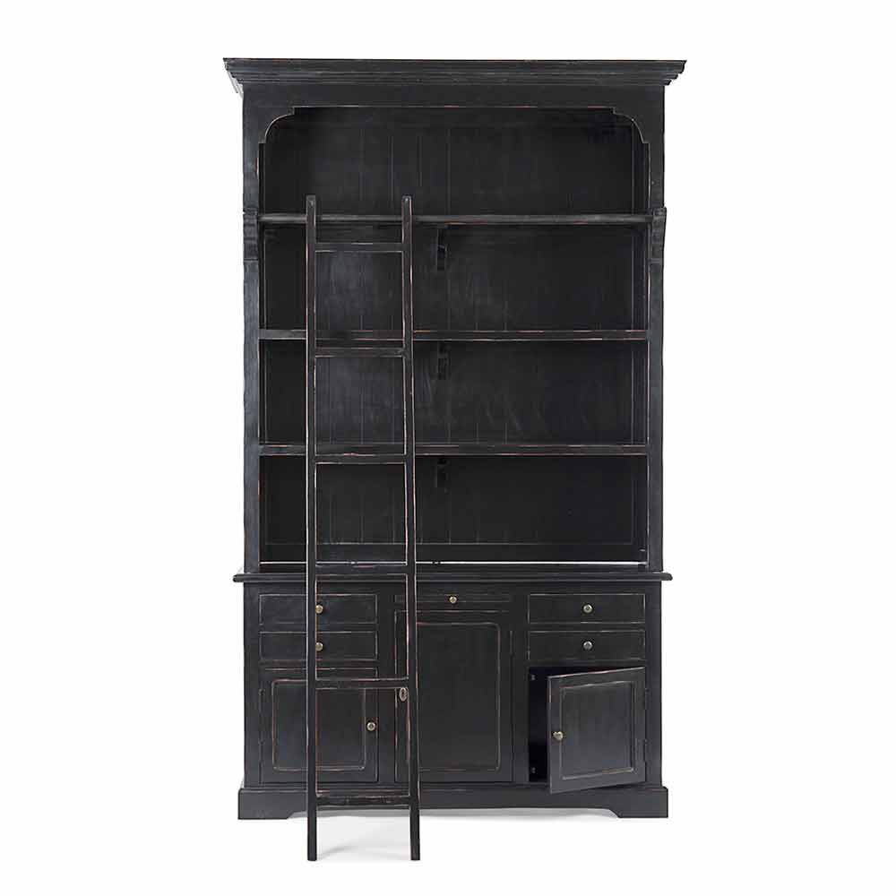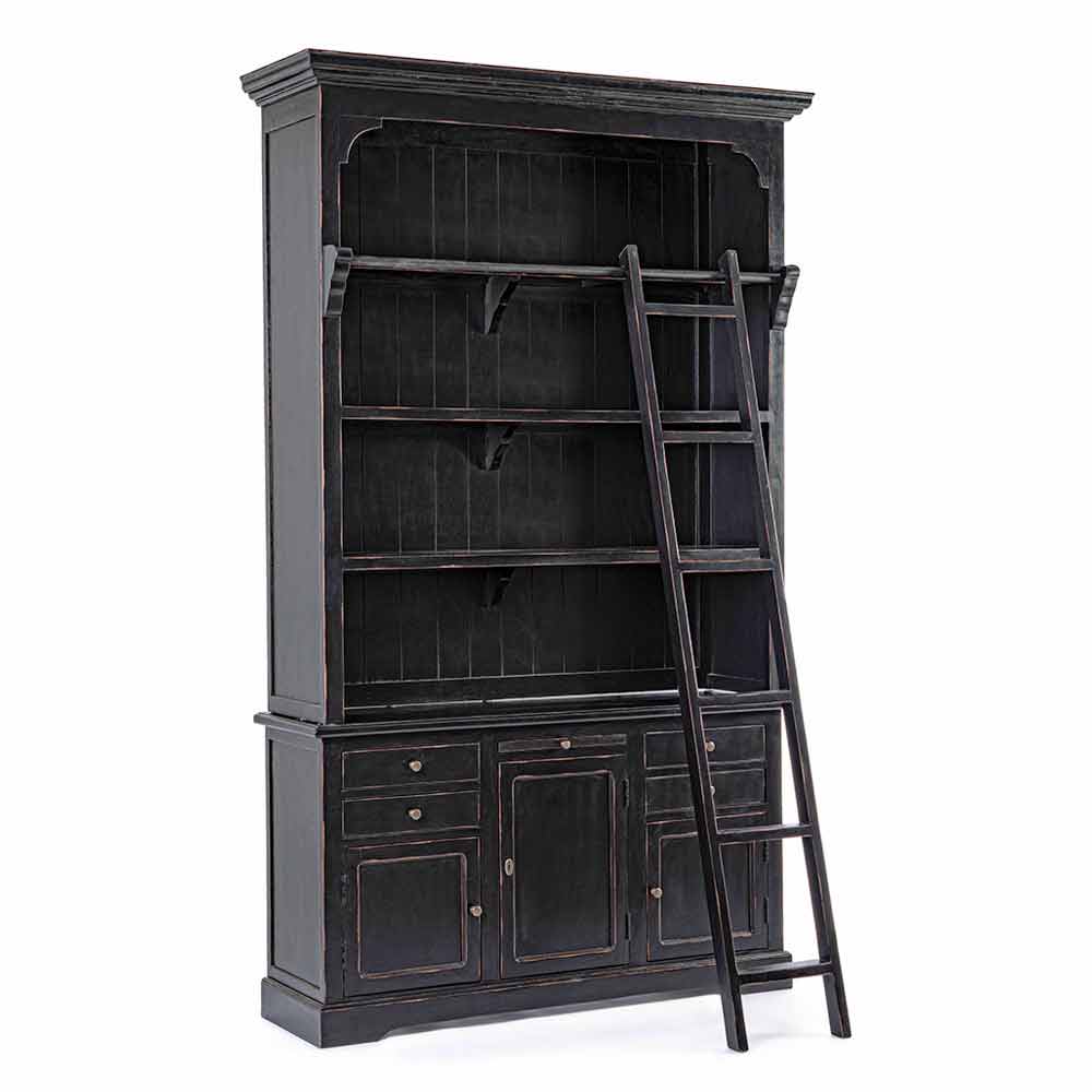 Klassisches Bücherregal aus Mangoholz und MDF mit Griffen aus Gusseisen.