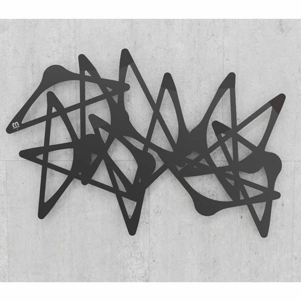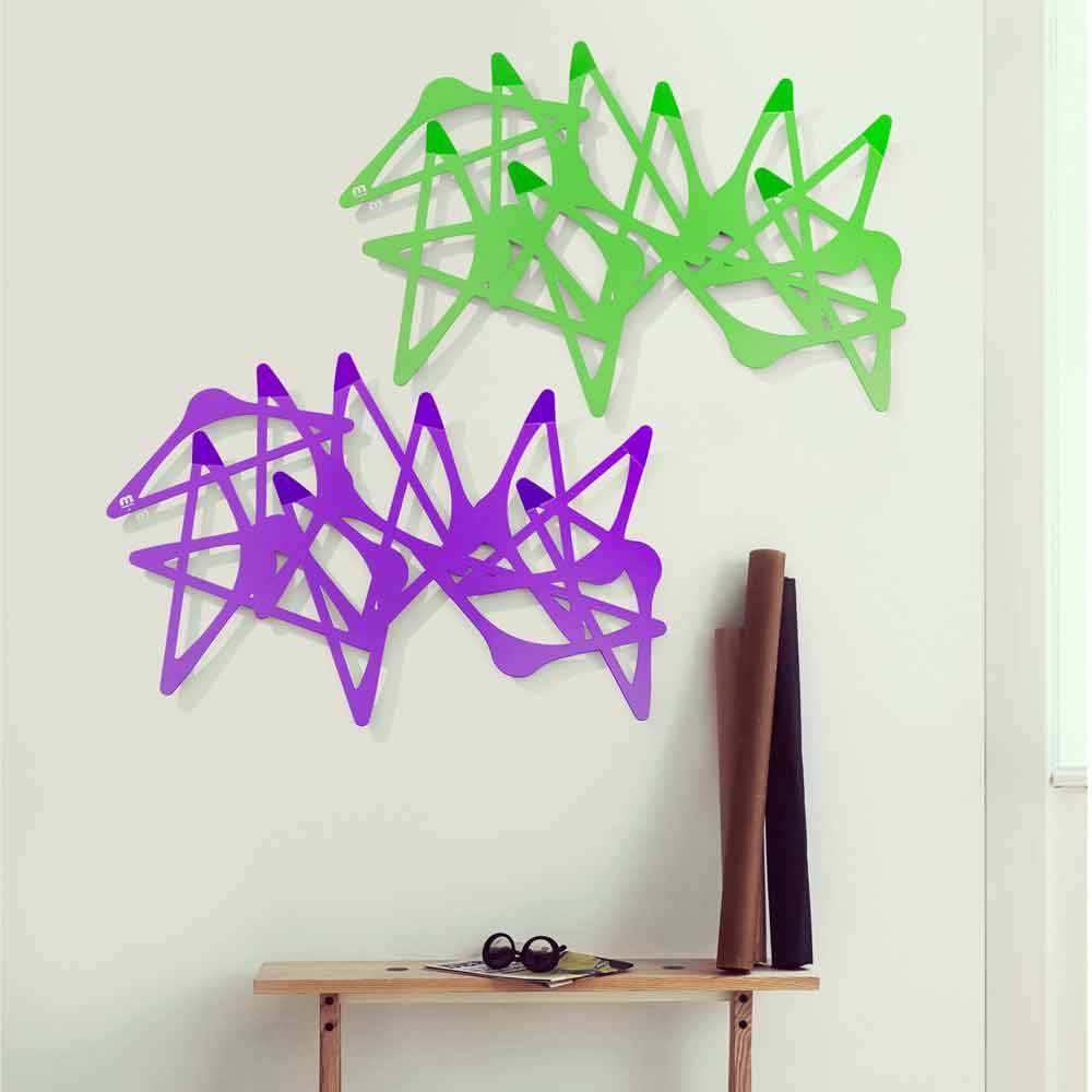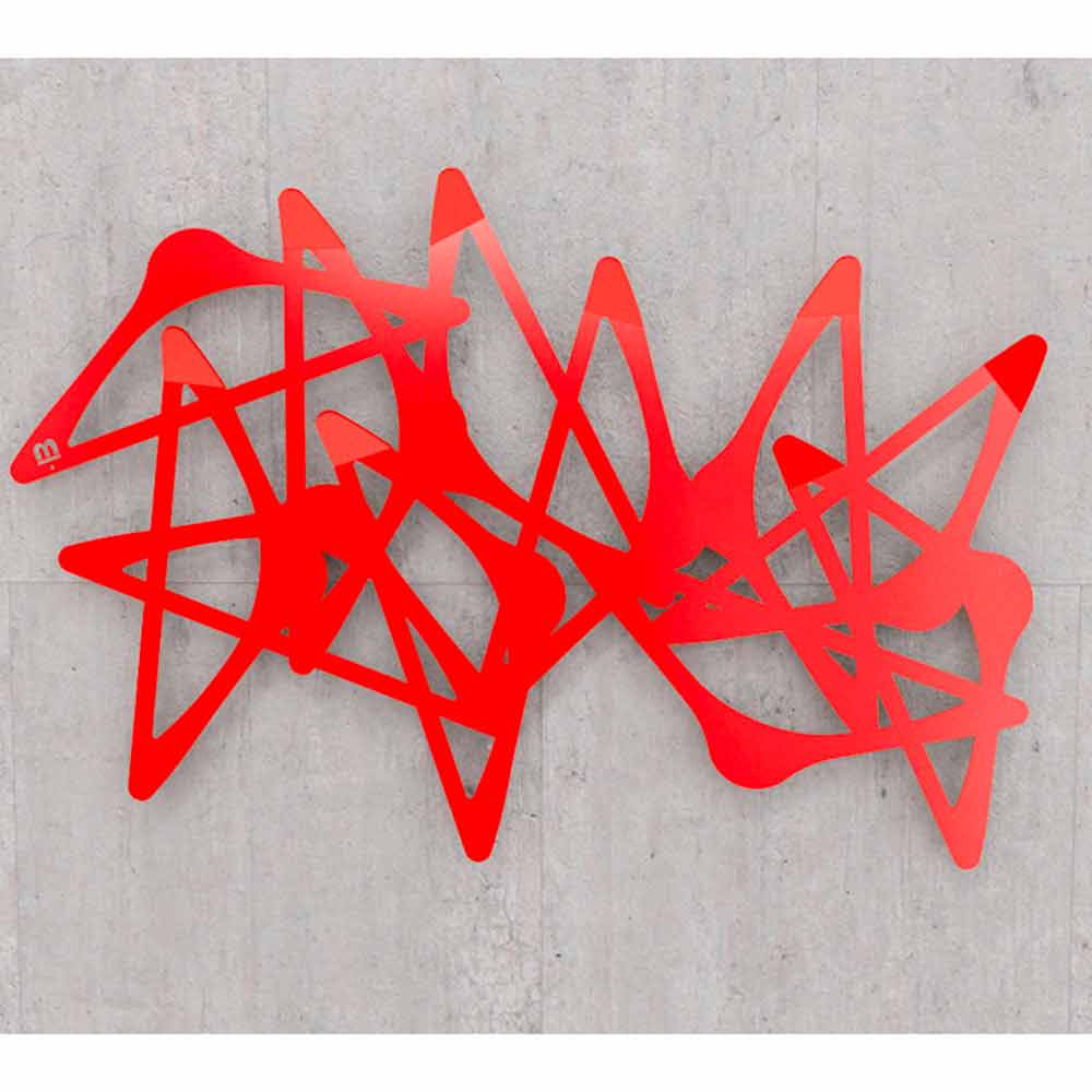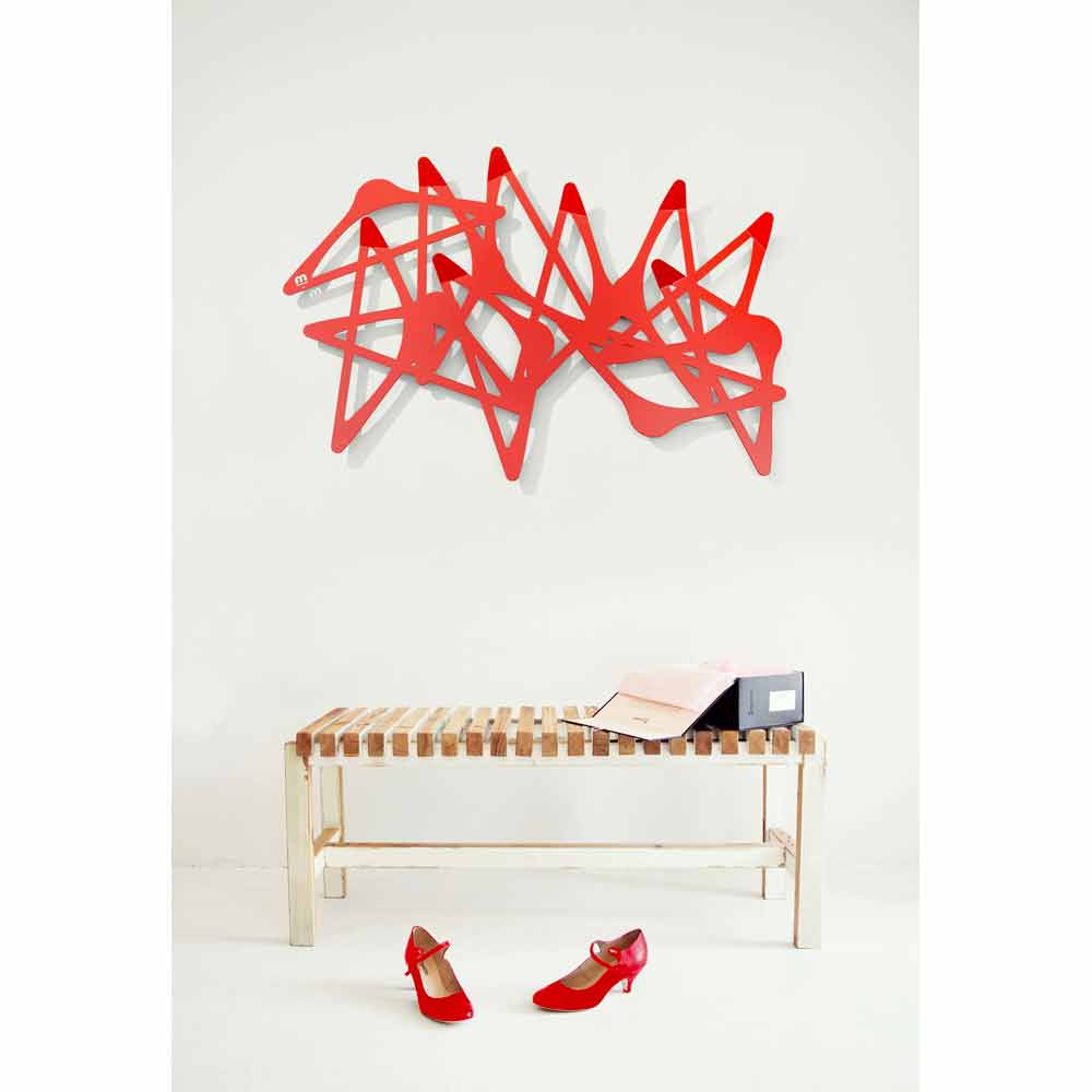 Bringen Sie Ordnung in Unordnung. Wenn nicht in den Worten, zumindest mit den Jacken und Mäntel. BlaBla ist ein Sympatisch Kleiderbügel aus lasergeschnittenen Metall, mit der Form eines chaotisch und unordentlich stilisierten Kleiderbügel. BlaBla ist in Weiß, Rot, Schwarz, Orange und Grün erhältlich.