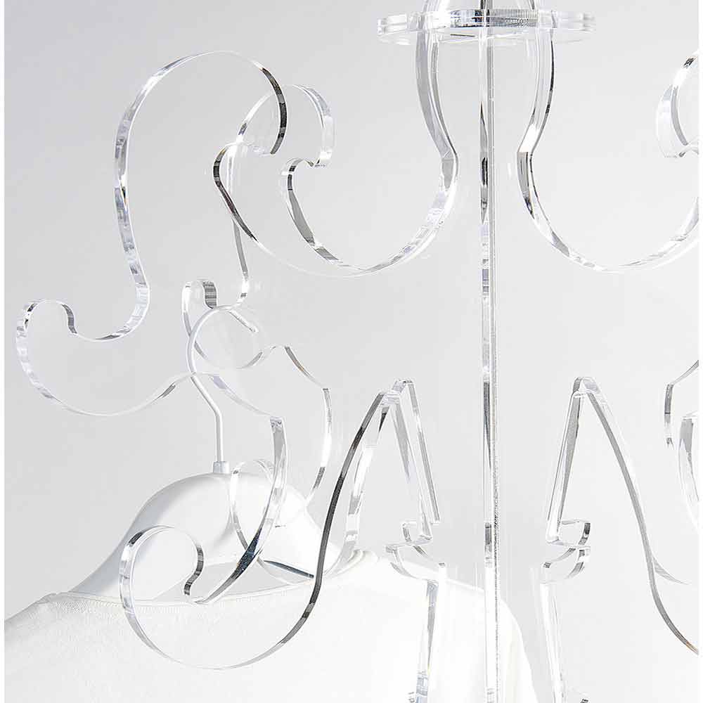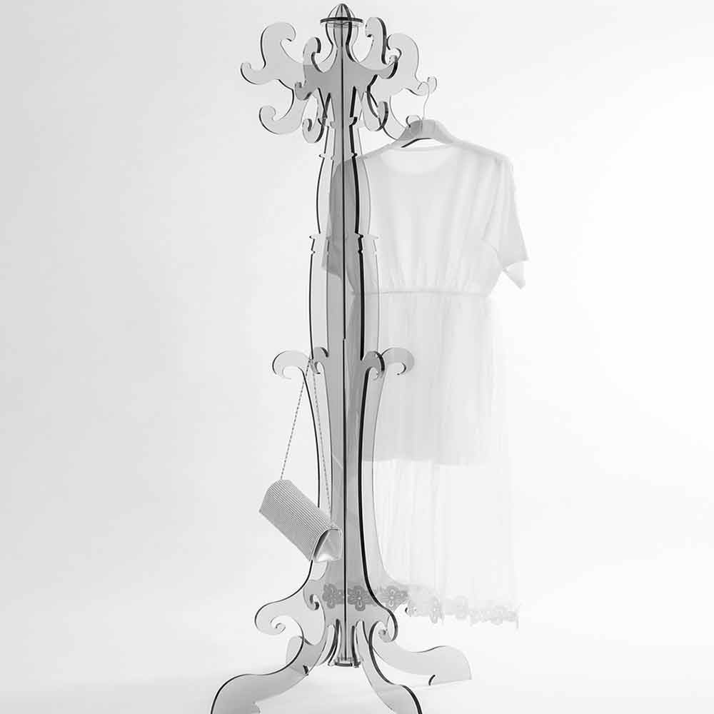 Ein Kleiderbügel mit bezaubernden Formen, die an das Design des frühen 20. Jahrhunderts erinnern. Giave ist aus Plexiglas gefertigt, das zu 100% aus jungfräulichem Polymer besteht und vollständig lasergeschnitten ist.