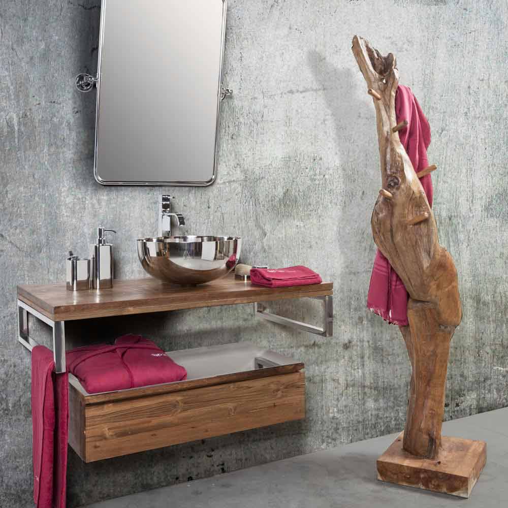 Badezimmerbodenaufhänger aus massivem Teakholz.