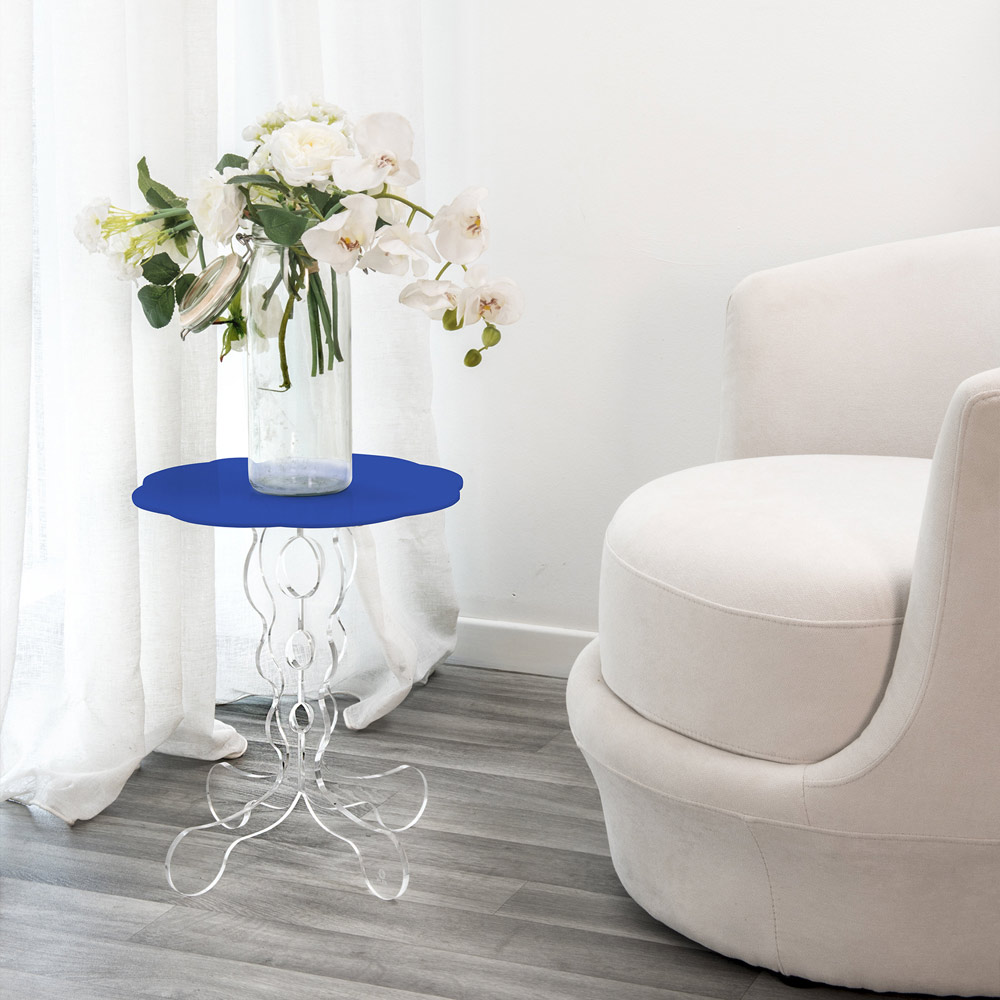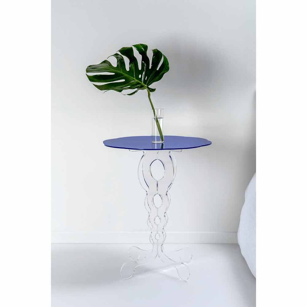 Maurische Rückrufe für den Janis-Blautisch: Die 100% PMMA-Plexiglas-Basis aus transparentem, jungfräulichem Polymer, lasergeschnitten, gibt Diskretion, während das blaue Regal mit vollem Pigment der häuslichen Umgebung einen Hauch von Farbe verleiht. Plexiglas ist stoßfest, nicht verformbar, unveränderbar und wärmeisolierend. Die Helligkeit und Helligkeit werden über die Zeit konstant und unverändert beibehalten. PMMA Plexiglas aus reinem Polymer ist ungiftig, hypoallergen, geruchlos und antibakteriell. Entworfen, entworfen und hergestellt in Italien, mit italienischen Materialien.