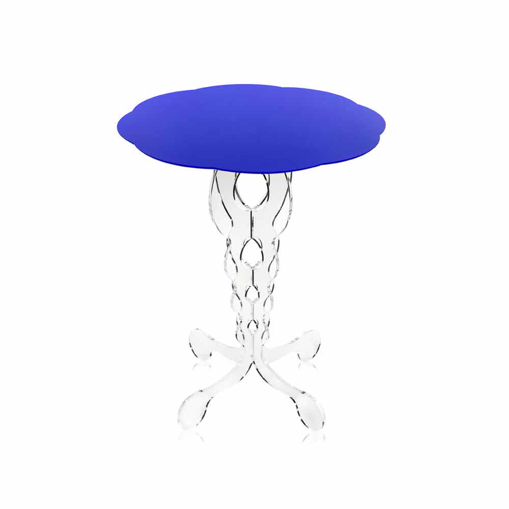 Kleiner runder Tisch blau Durchmesser 50 cm modernes Design Janis, made in Italy