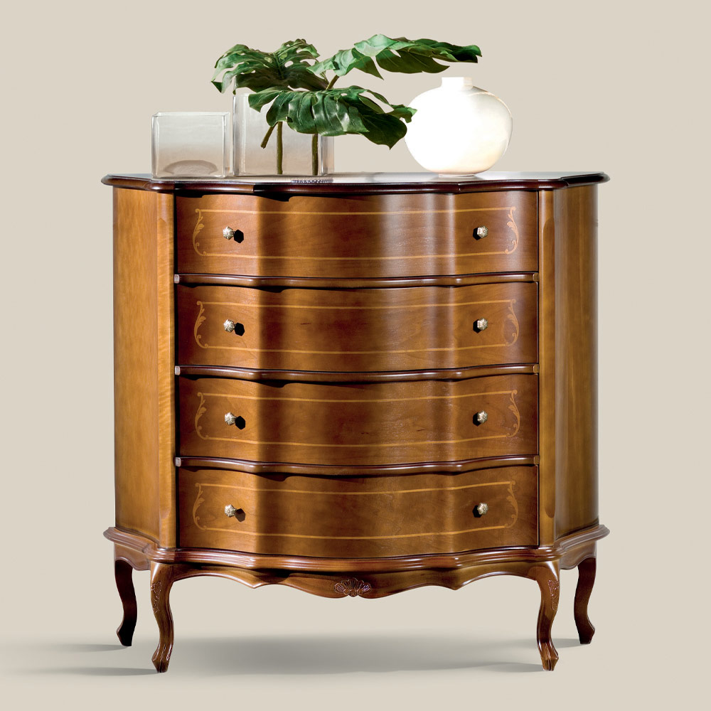 Kommode 3 oder 4 Schubladen aus luxuriösem eingelegtem Holz Made in Italy.