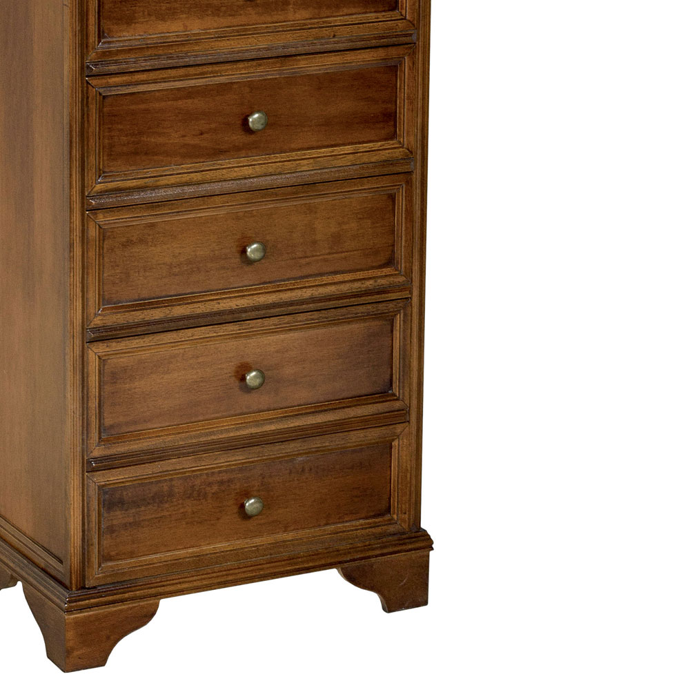 VORSICHTSMASSNAHMEN: Da Holz ein lebendiges und feuchtigkeitsempfindliches Material ist, muss besonders darauf geachtet werden, die Möbel in Häusern aufzustellen, deren Putz mindestens einen Monat lang ausgeruht und trocken war. Wir empfehlen jedoch, für einige Monate einen Abstand von mindestens 5 Zentimetern zur Wand zu lassen und die Räume häufig zu lüften.