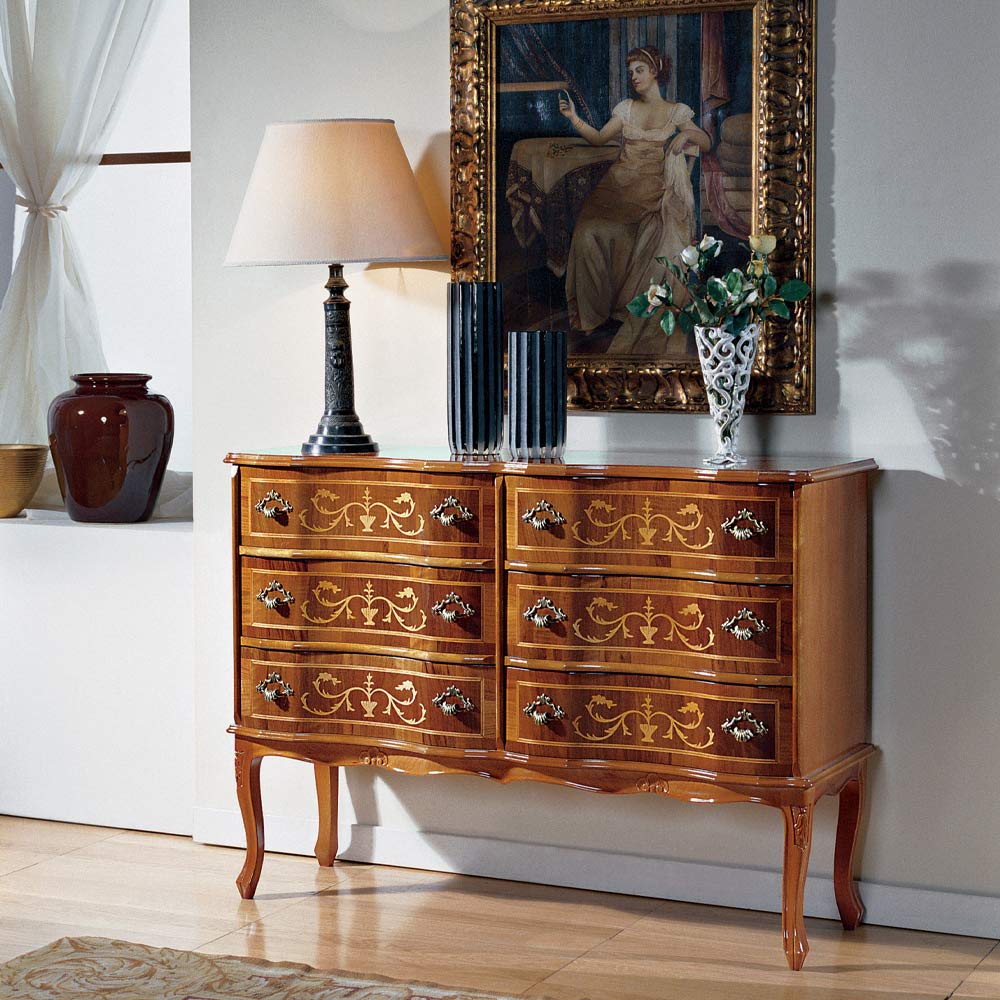 Kommode im klassischen Stil aus Holz mit 6 Schubladen Made in Italy.