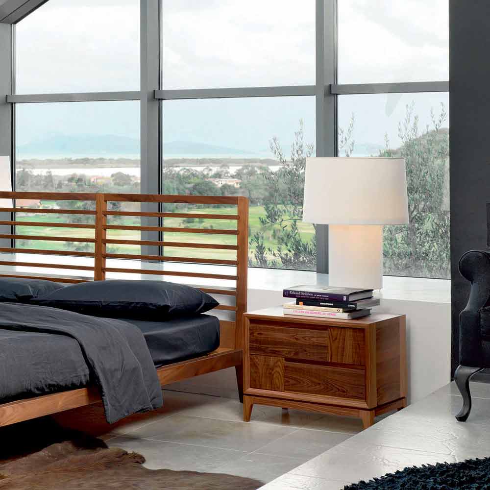 Der gesamte Stil und das handwerkliche Können, die die Verarbeitung kennzeichnen, zeigt sich in dieser hervorragenden Lösung für den Nachtbereich. Die üppige Kommode unterstreicht die Eigenschaften von massivem Nussbaum und ruht auf Füßen, die sowohl aus Holz als auch aus Stahl gefertigt werden können.