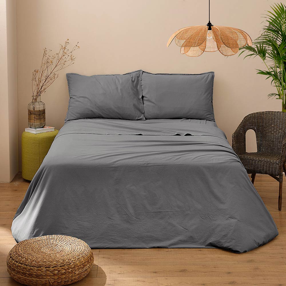 stückgefärbten Doppelbettset aus reiner Baumwolle einen Hauch zeitloser Eleganz. Die weiche und atmungsaktive Textur der Baumwolle sorgt für unvergleichlichen Komfort, während die Stückfärbetechnik eine satte und lang anhaltende Farbe ergibt, die auch nach vielen Wäschen noch hält. Dieses Set ist perfekt für alle, die Stil und Funktionalität kombinieren möchten. Es umfasst Ober- und Unterlaken sowie passende Kissenbezüge, die alle darauf ausgelegt sind, Ihnen maximalen Komfort zu bieten und Ihrem Zimmer einen Hauch von Raffinesse zu verleihen.