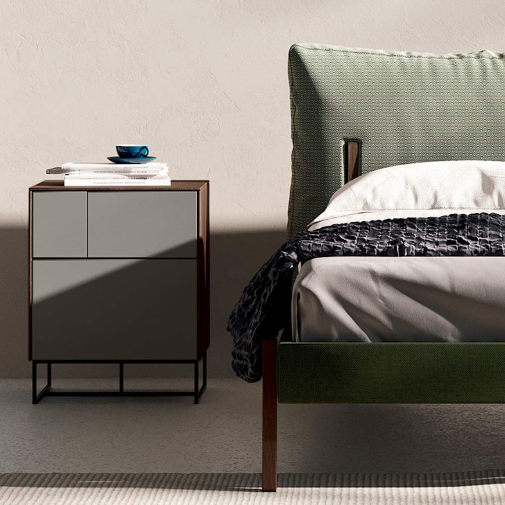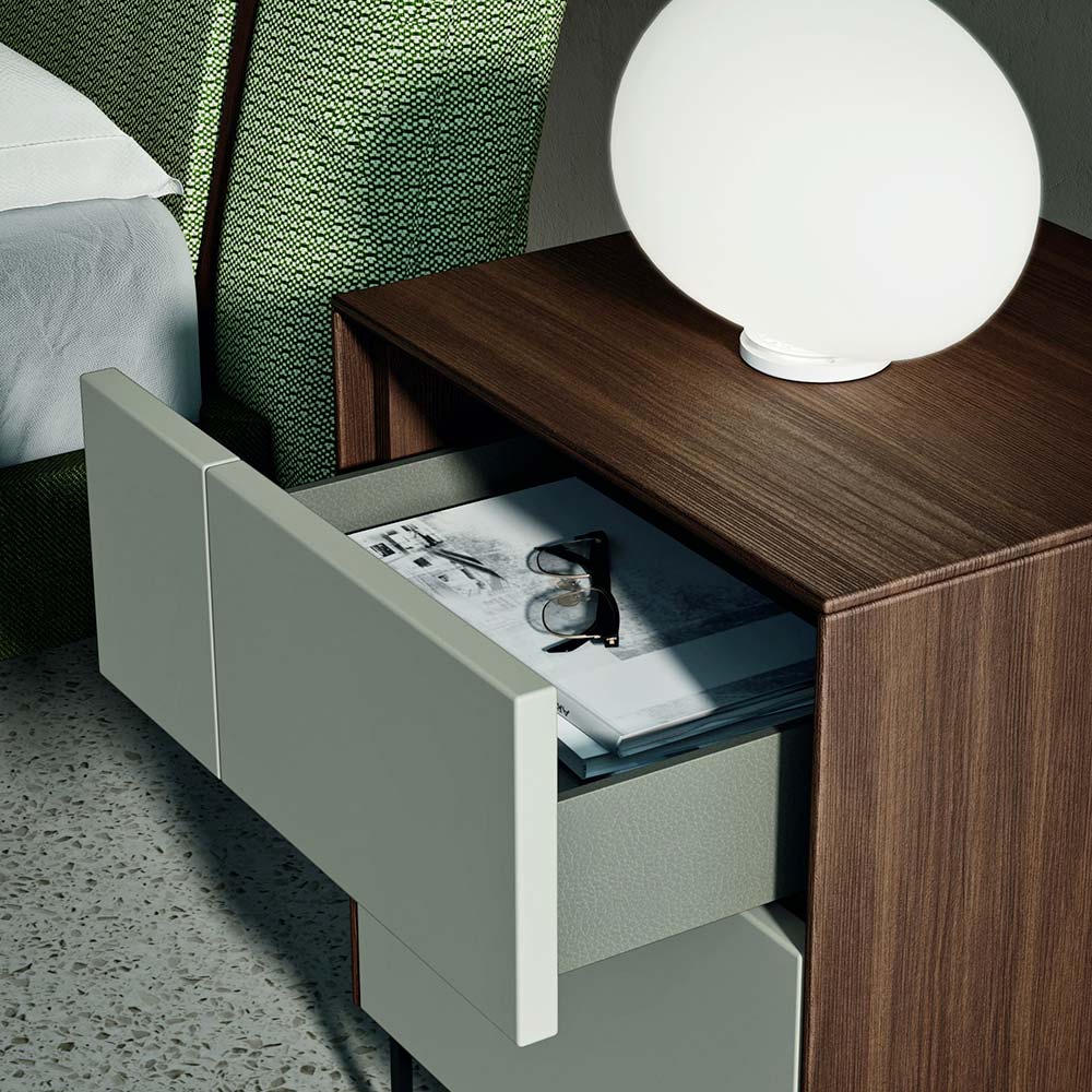 Es ist eine Einrichtungsidee, die auf der Grundlage handwerklicher Werte geschaffen wurde, um die für das Made in Italy typische Exzellenz und hohe Qualität zu erreichen, bei der innovative Ideen und Kultur zugunsten der Optimierung der Prozesse und der Liebe zum Detail miteinander verwoben werden. So entstehen funktionale und raffinierte Möbel für den Schlafbereich.