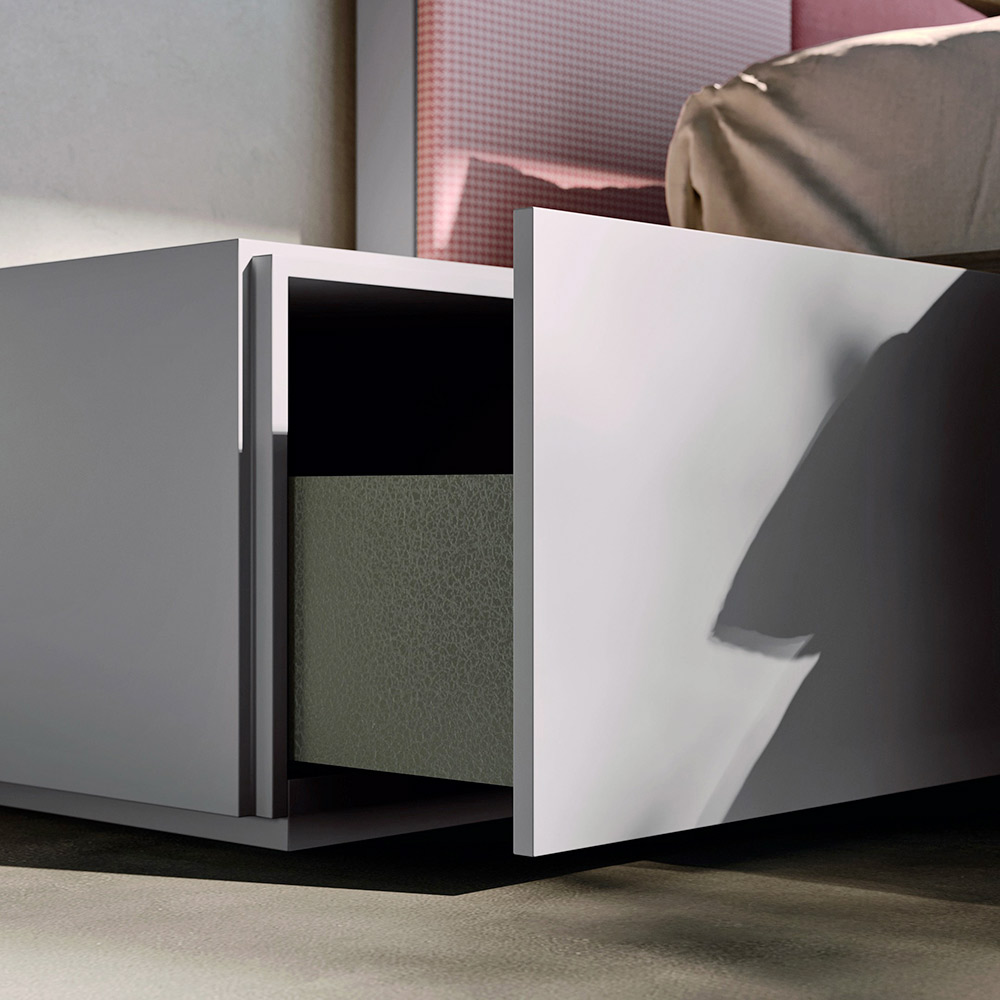 Es handelt sich um eine Einrichtungsidee, die auf der Grundlage handwerklicher Werte geschaffen wurde, um die für Made in Italy typische Exzellenz und hohe Qualität zu erreichen, bei der innovative Ideen und Kultur zugunsten von Prozessoptimierung und Liebe zum Detail miteinander verflochten sind. So entstehen funktionale und raffinierte Schlafzimmermöbel.
