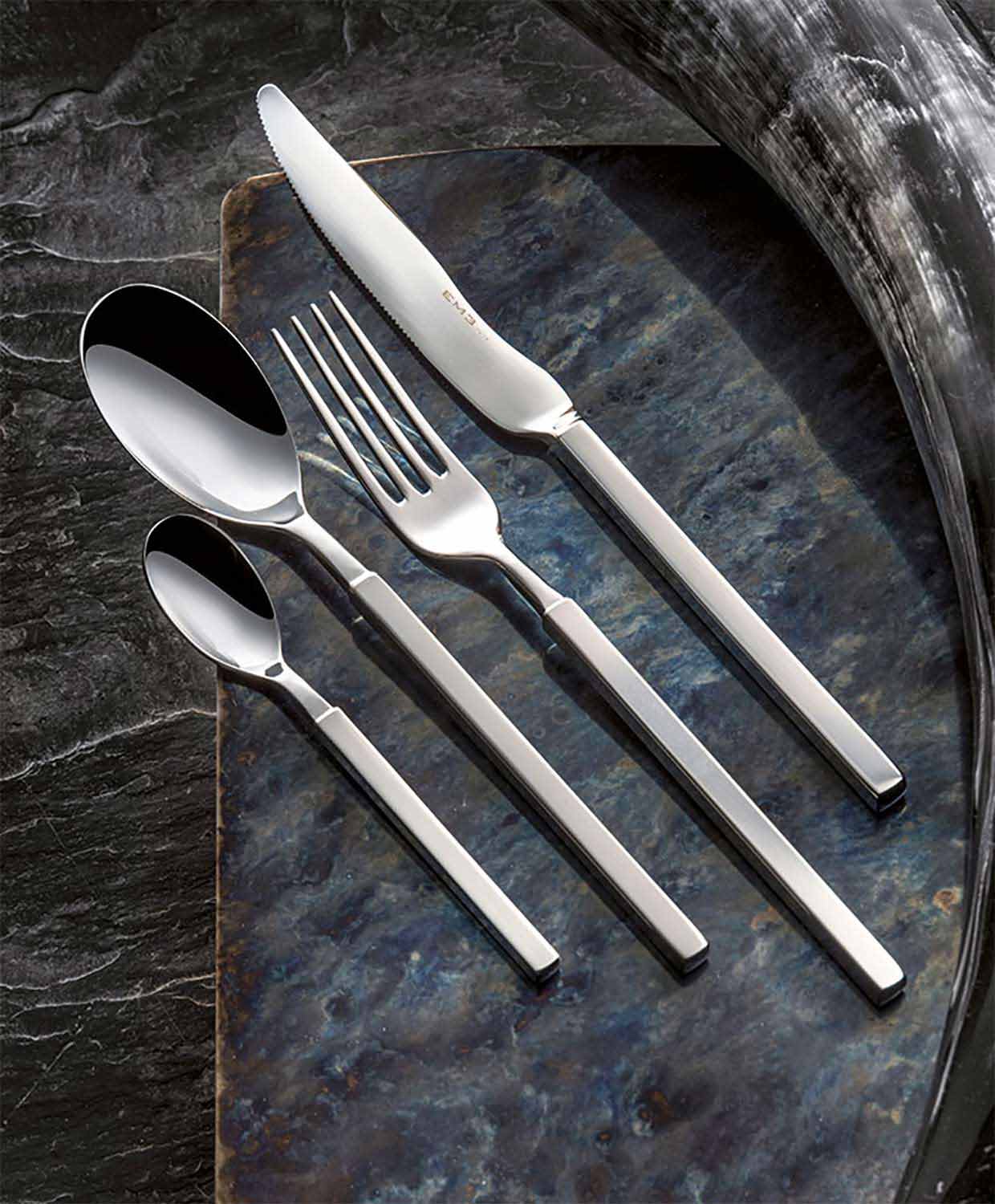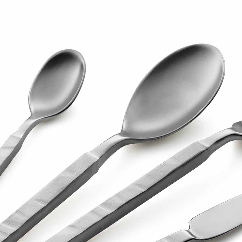 Besteckset aus poliertem oder sandgestrahltem Edelstahl, modernes Design made in Italy.