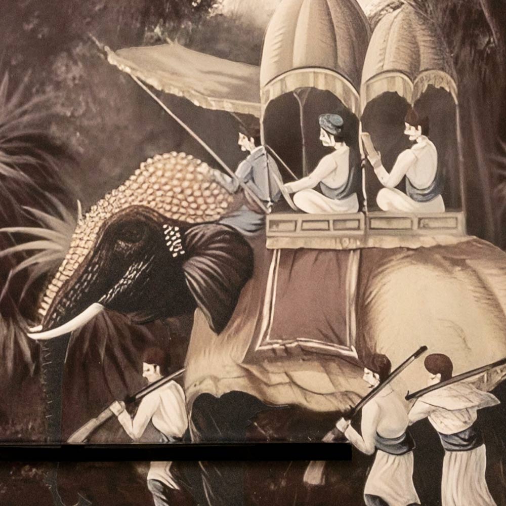 Mit diesem Gemälde möchten wir dem Raum eine exotische und tropische Atmosphäre verleihen, dank des Drucks eines Elefanten mit Baldachin und des umliegenden Waldes, der die Komposition perfekt macht, um die Einrichtung jedes Raumes zu vervollständigen. Es wurde vollständig in Italien mit der Auswahl der besten Materialien und mit Sorgfalt und Aufmerksamkeit in jedem einzelnen Produktionsprozess hergestellt.