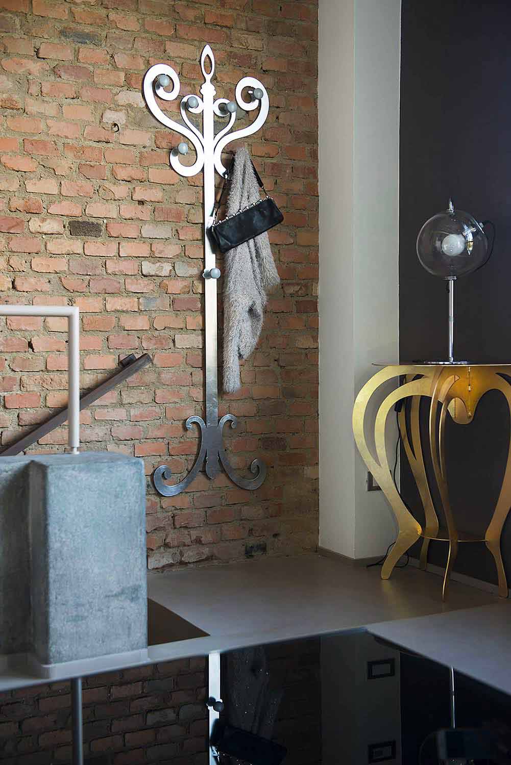 Barbata ist eine kleine Lounge oder Eingangskonsole mit elegantem Stil und raffinierten Linien, die sie definieren und zu etwas Besonderem machen. In Italien in Eisen handgefertigt .