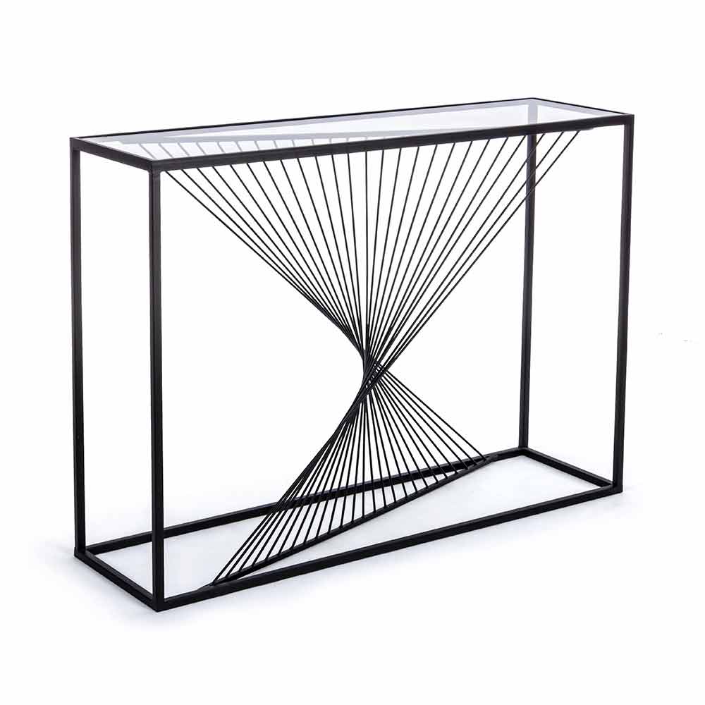 Moderne rechteckige Konsole aus Stahl und Glas mit Formenspiel.