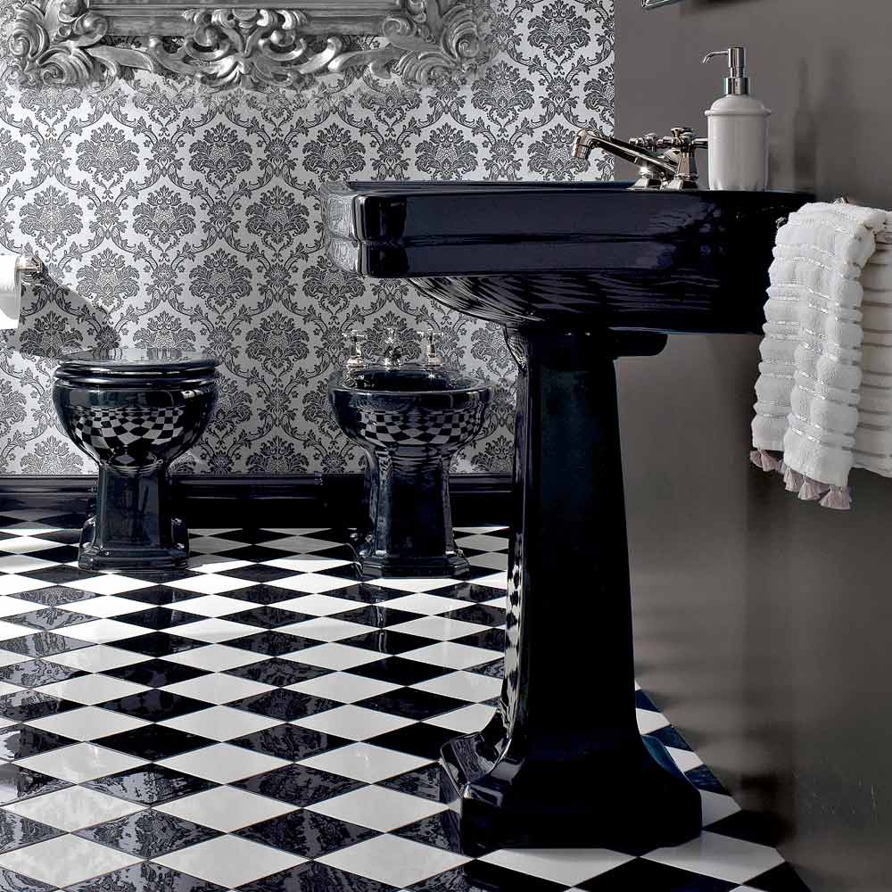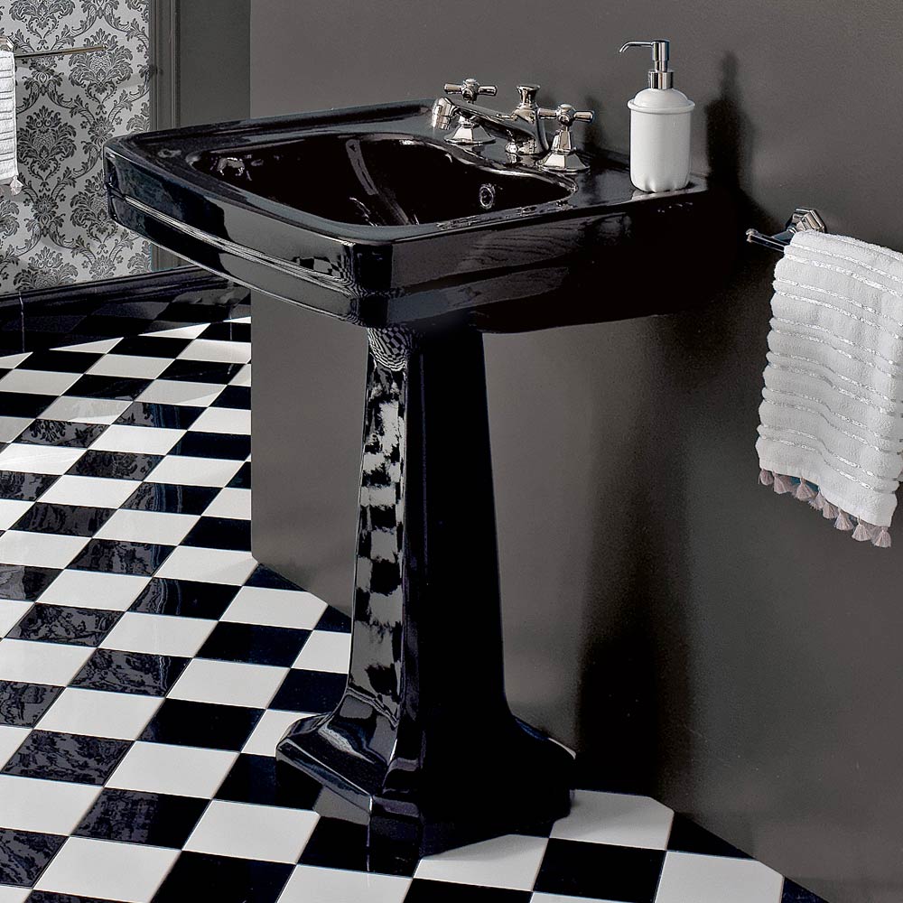 Konsolenwaschbecken auf Säule made in Italy in weißer oder schwarzer Keramik, Vintage-Stil, Marwa.