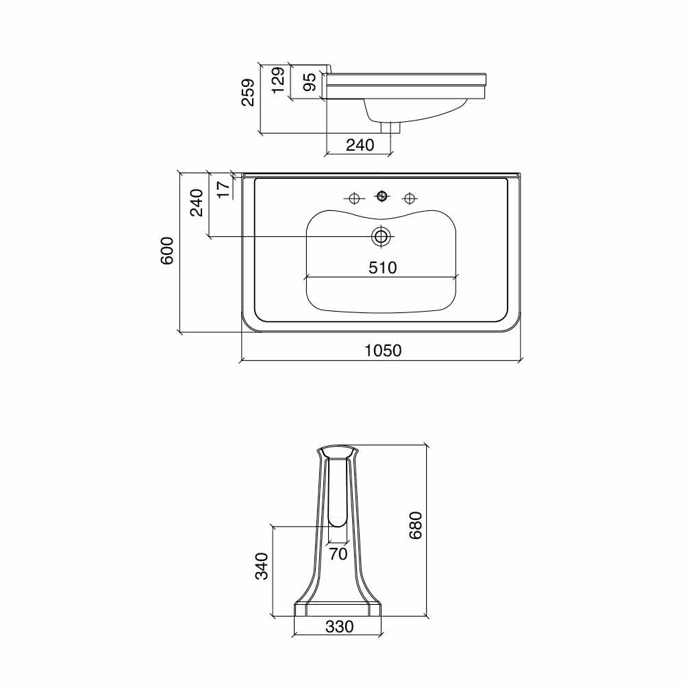 - L 105 x T 60 x H 58 cm mit 1-3 Stehbohrungen - L 10550 mm;