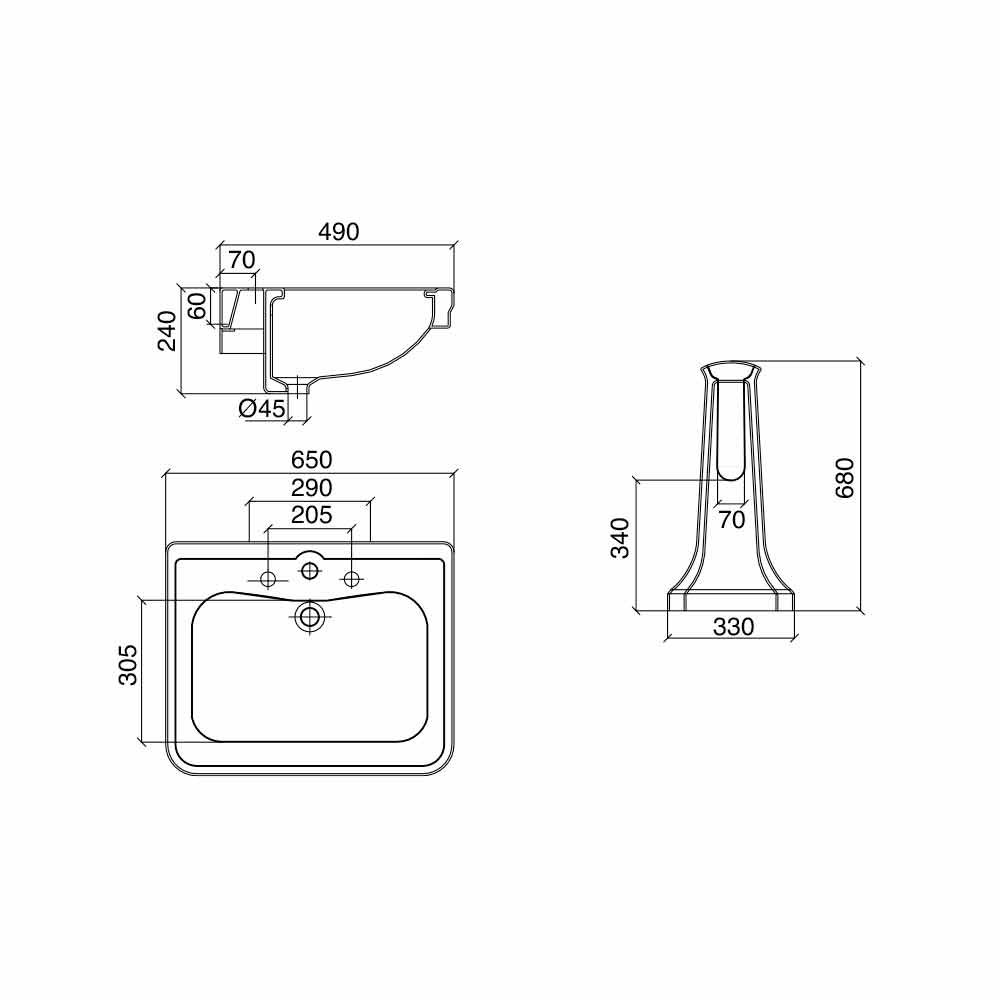 Der Stil dieser Konsolenspüle kann als neoklassisch definiert werden: Design und Retro-Linien erinnern an