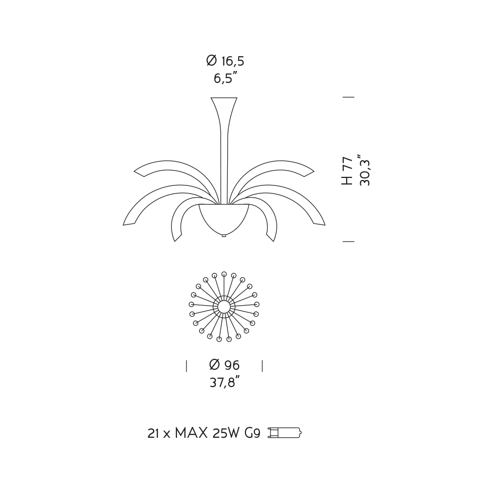Leuchtmittel (nicht im Lieferumfang enthalten) : 21 x MAX 25 W G9