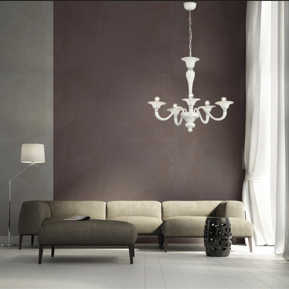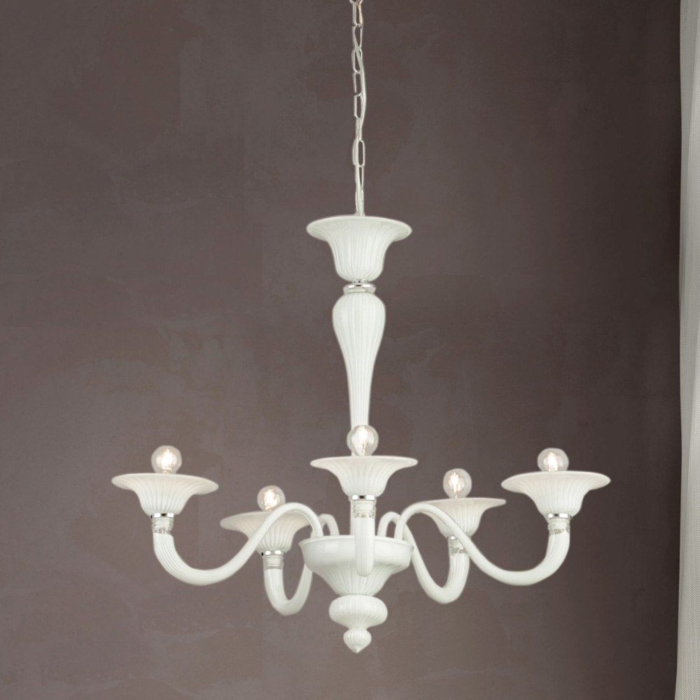 Klassischer mundgeblasener weißer Venedig Glas Kronleuchter.