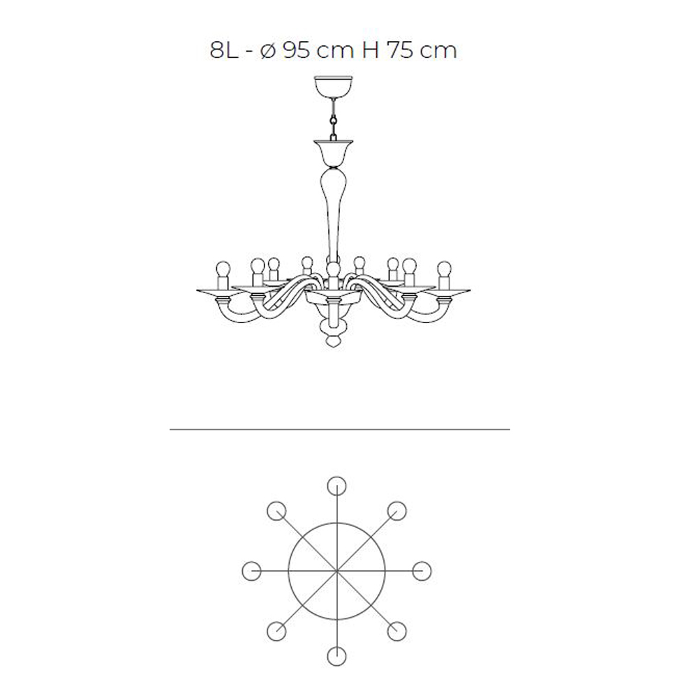 mundgeblasenem Glas in den Öfen des venezianischen Hinterlandes, in Italien, durch die Verwendung alter Muranoglas-Verarbeitungstechniken, die im Laufe der Jahre von den erfahrensten Glasmeistern weitergegeben wurden.