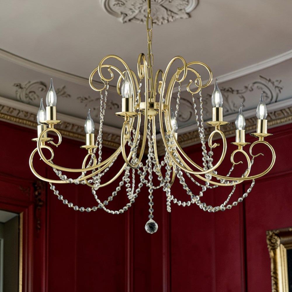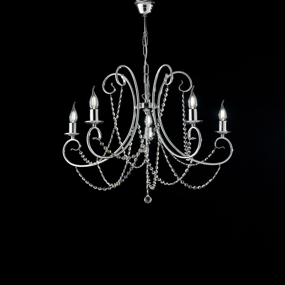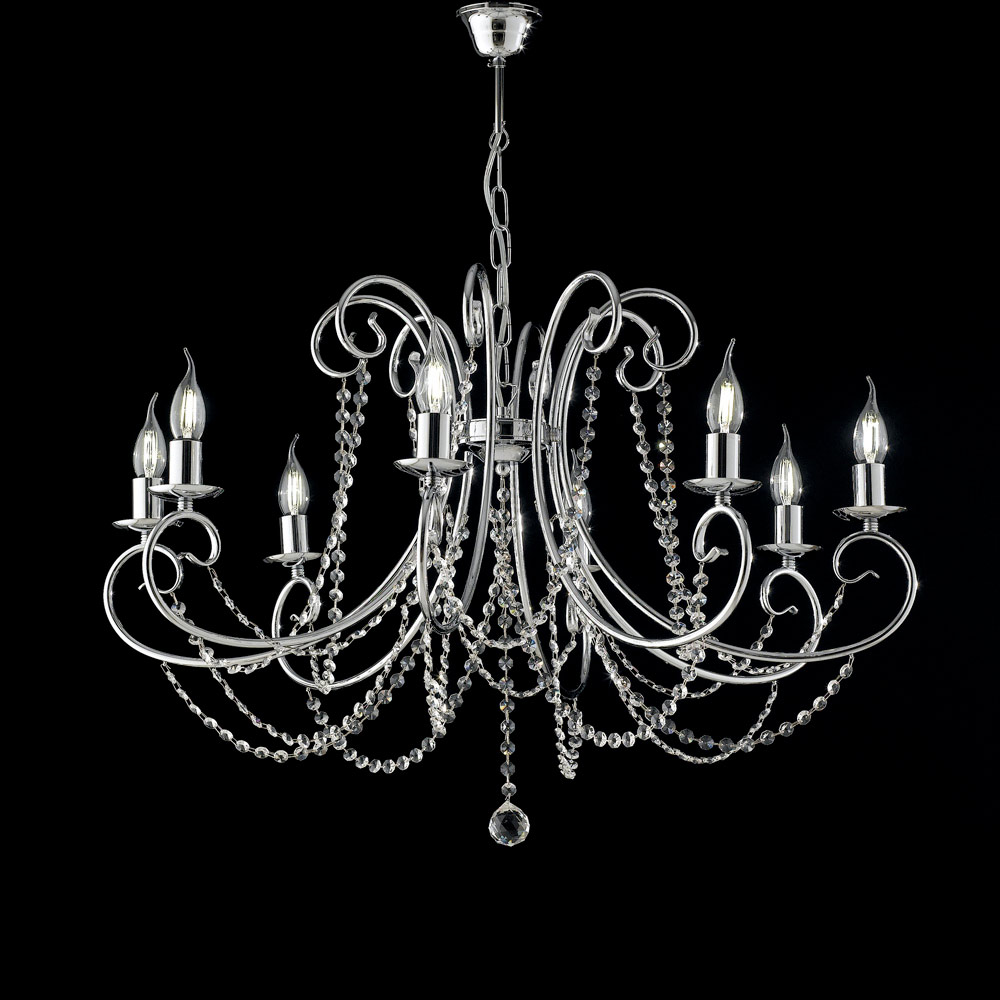 Als Ikone zeitloser Eleganz besticht dieser klassische Kronleuchter aus Eisen auf den ersten Blick durch seine geschwungenen Linien , die fein gearbeiteten Arme und die Kaskaden dekorativer Kristalle , die das Licht mit raffinierter Brillanz reflektieren.