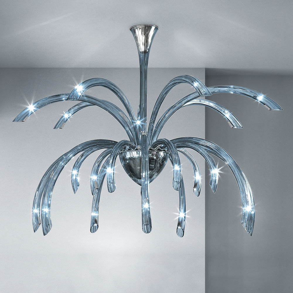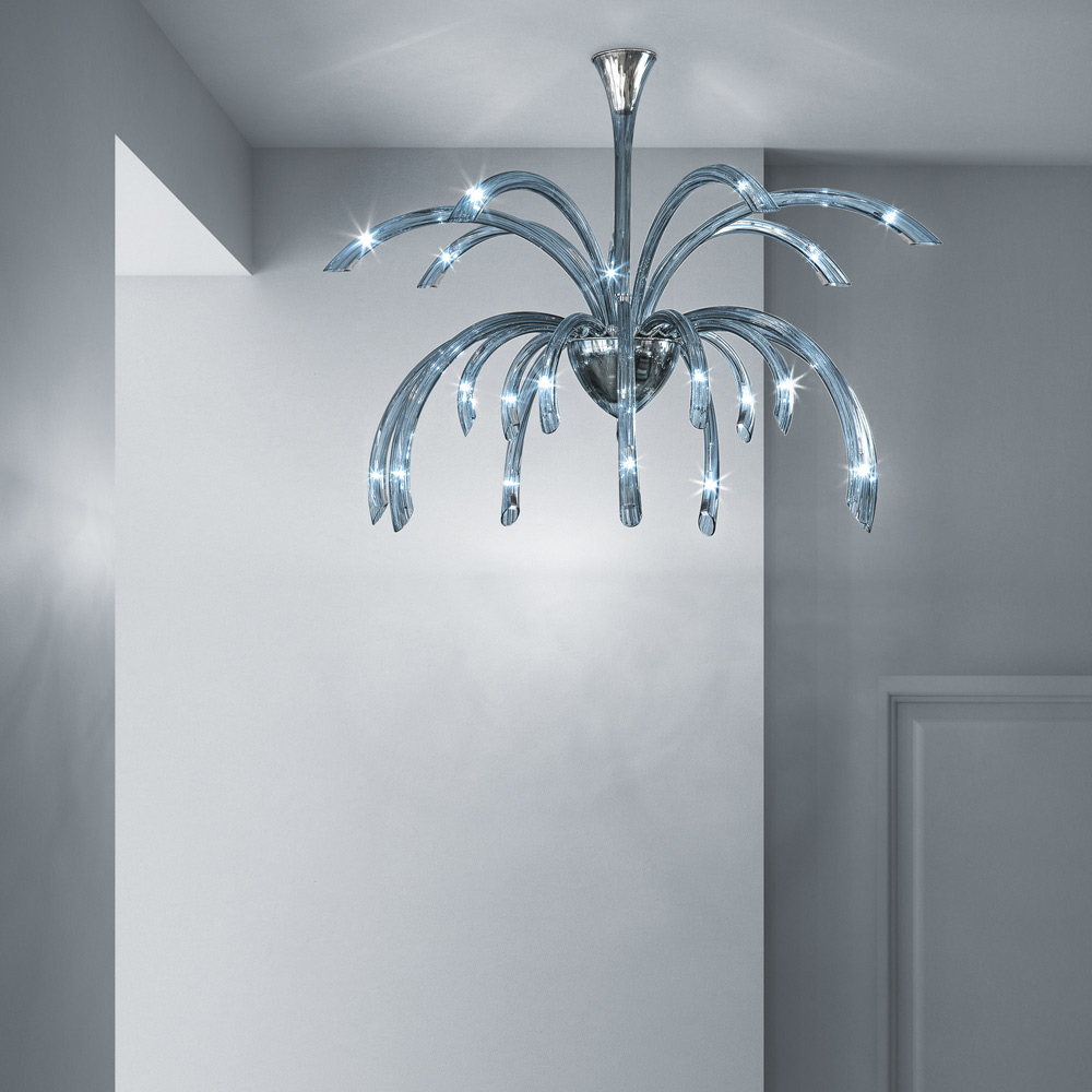 Kronleuchter mit 21 Lichtern aus venezianischem Glas und handgefertigtem Metall Made in Italy.