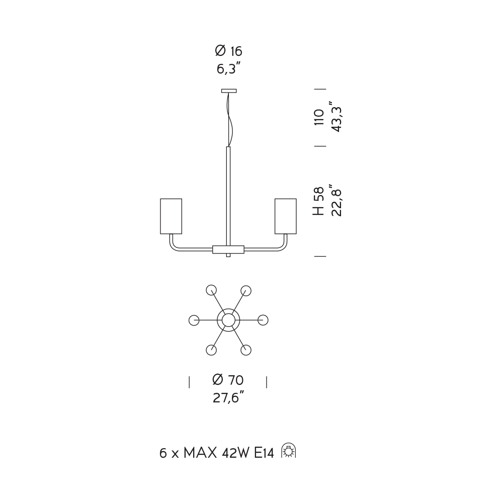 Leuchtmittel (nicht im Lieferumfang enthalten) : 6, 9 oder 12 x MAX 42 W E14