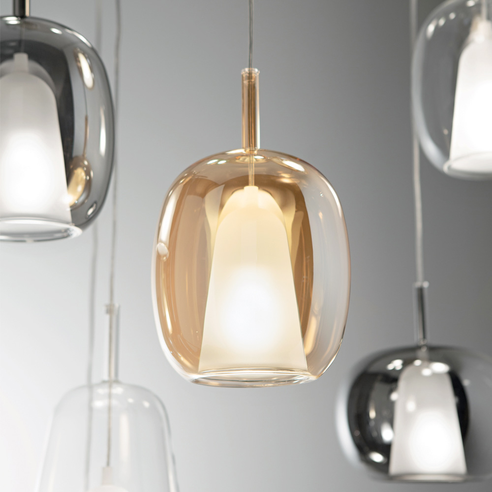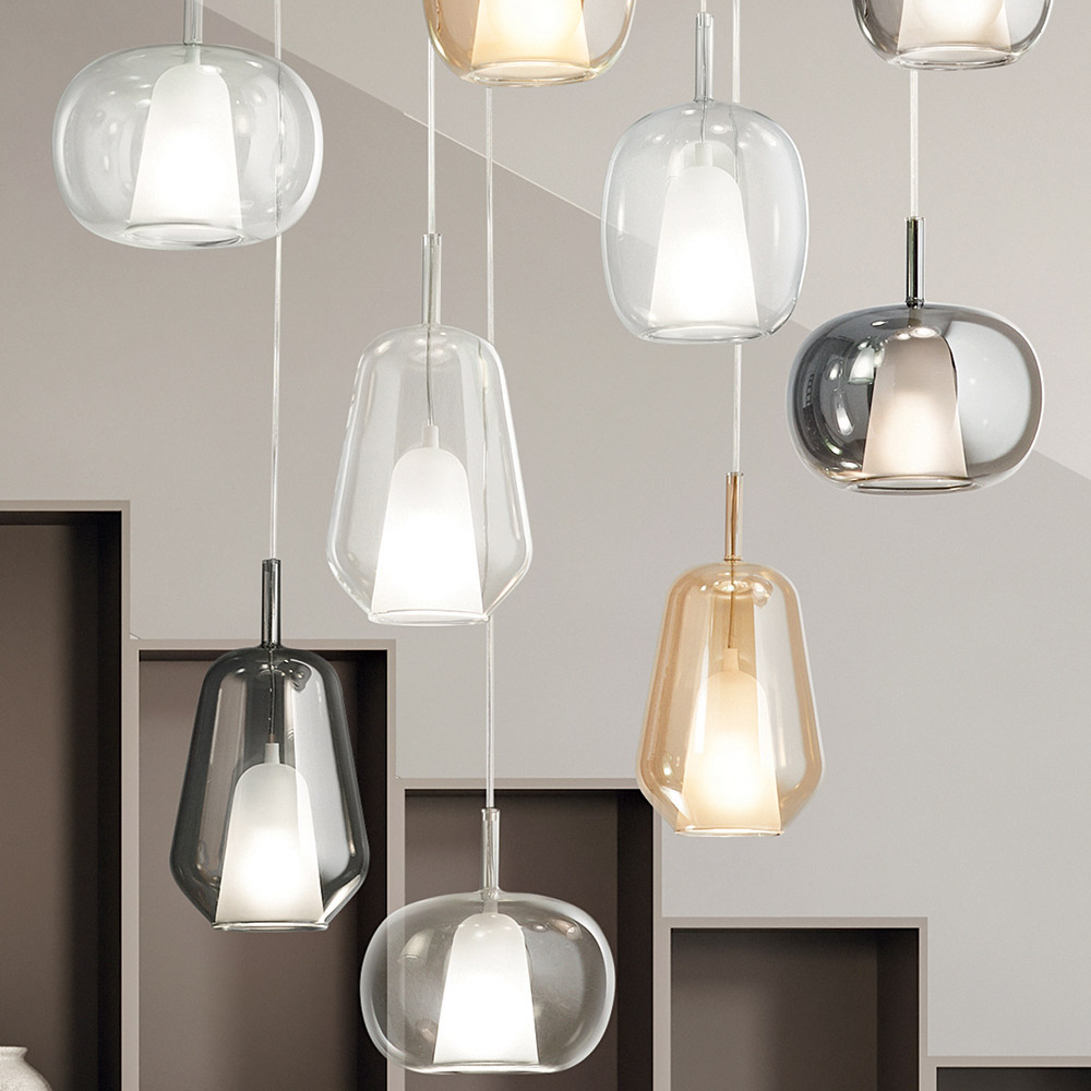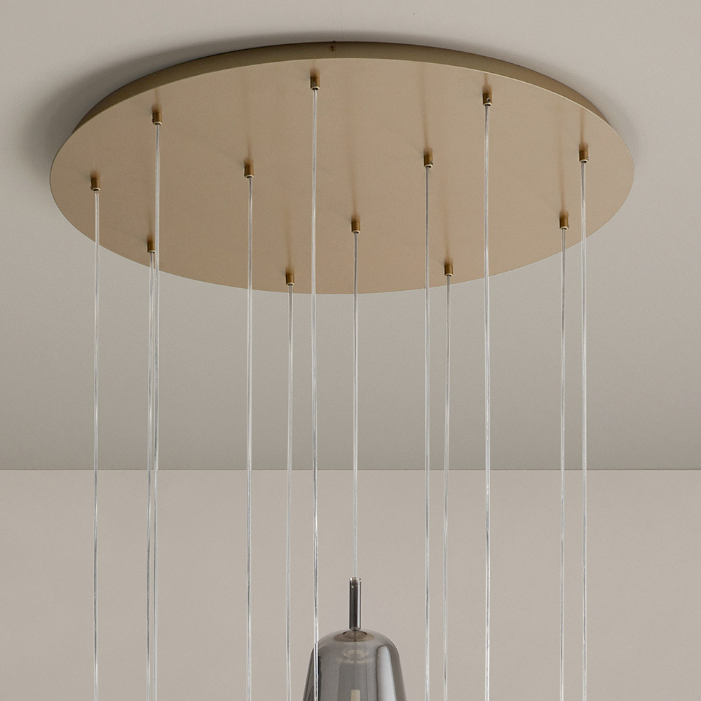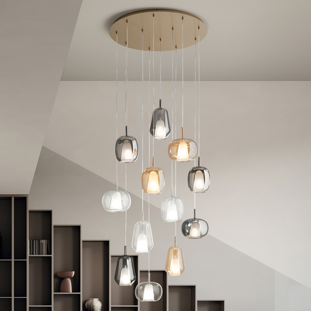 Entdecken Sie den Charme anspruchsvoller Beleuchtung mit diesem Kronleuchter, der jedem Raum Eleganz und Wärme verleiht . Die an einem dünnen Draht aufgehängten Diffusoren sind in verschiedenen Ausführungen erhältlich und reflektieren ein einladendes und einladendes Licht, das die Umgebung mit einem Hauch raffinierter Modernität bereichert.