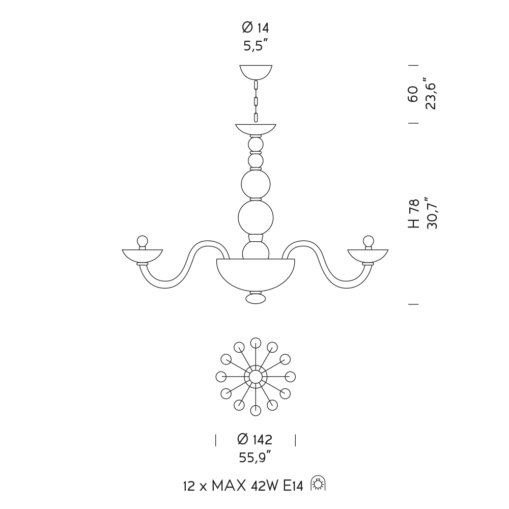 Leuchtmittel (nicht enthalten) : 12 x MAX 42W E14