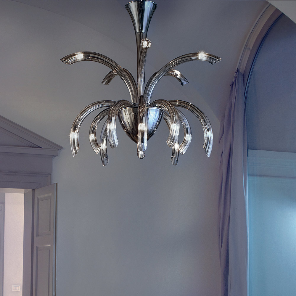 Kronleuchter mit 15 Lichtern aus venezianischem Glas und verchromtem Metall Made in Italy - Jason