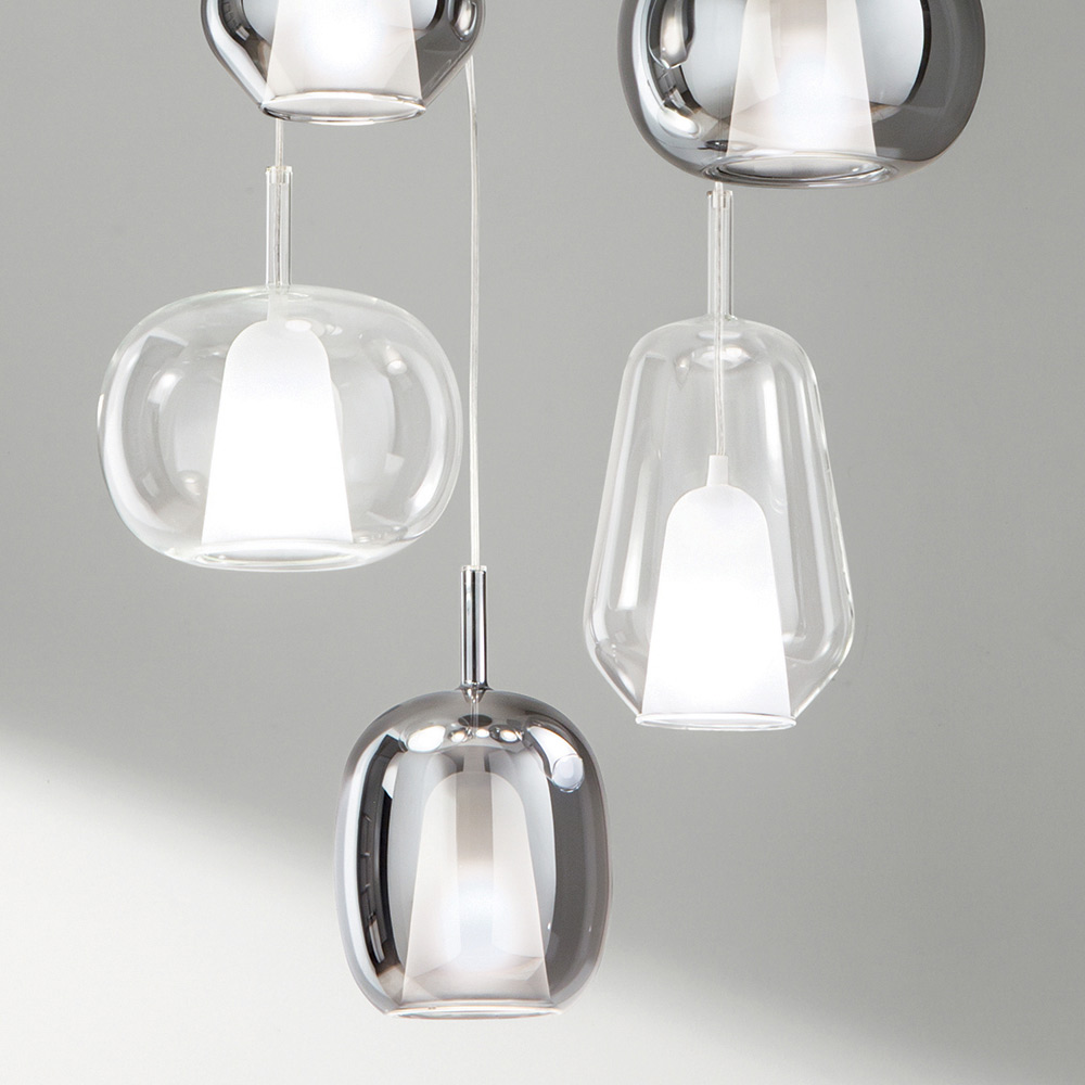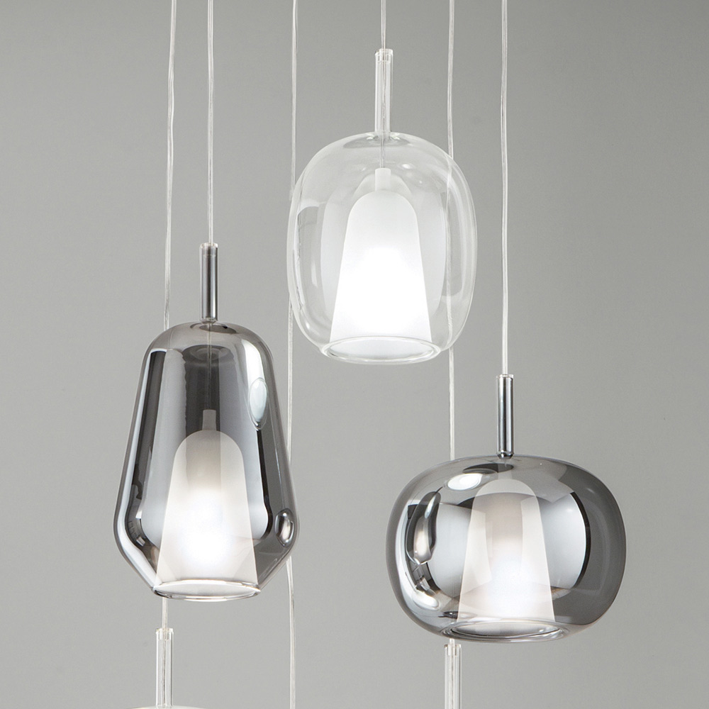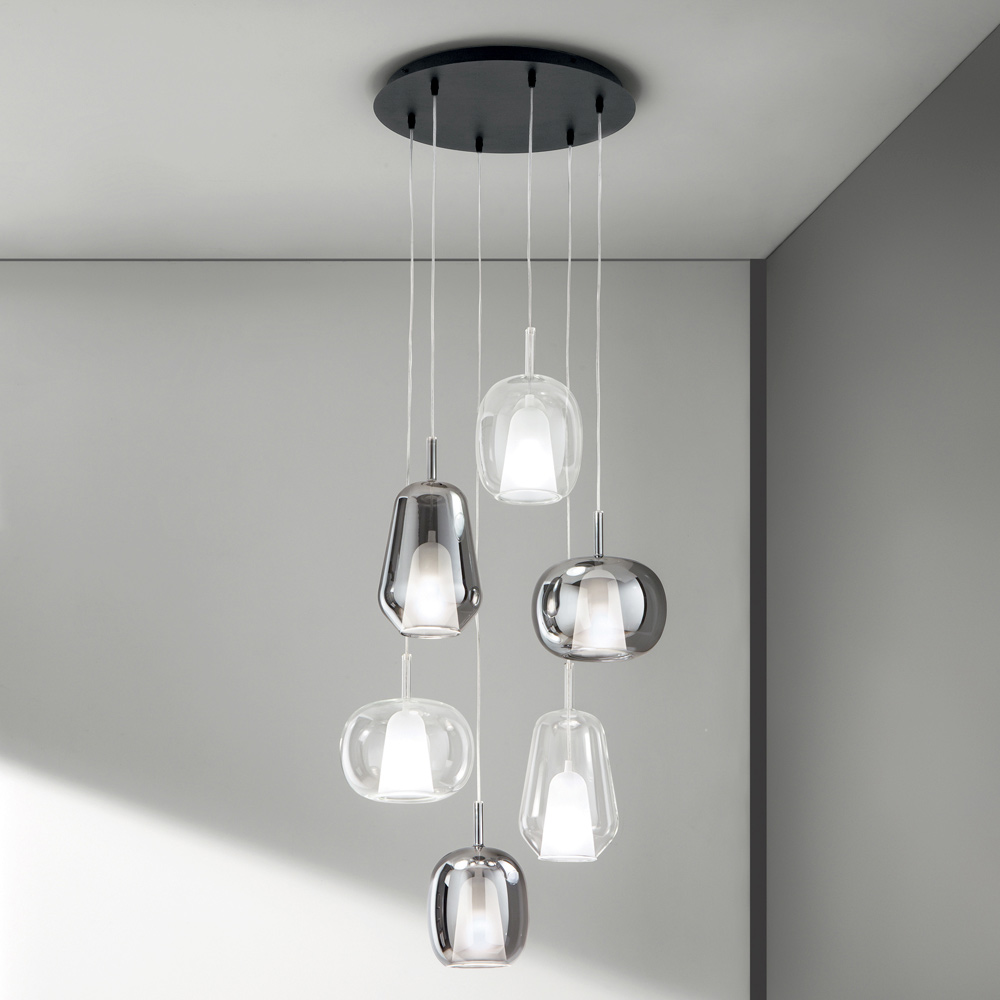 Kronleuchter mit 6 Diffusoren aus geräuchertem und transparentem Glas Made in Italy - Trilly