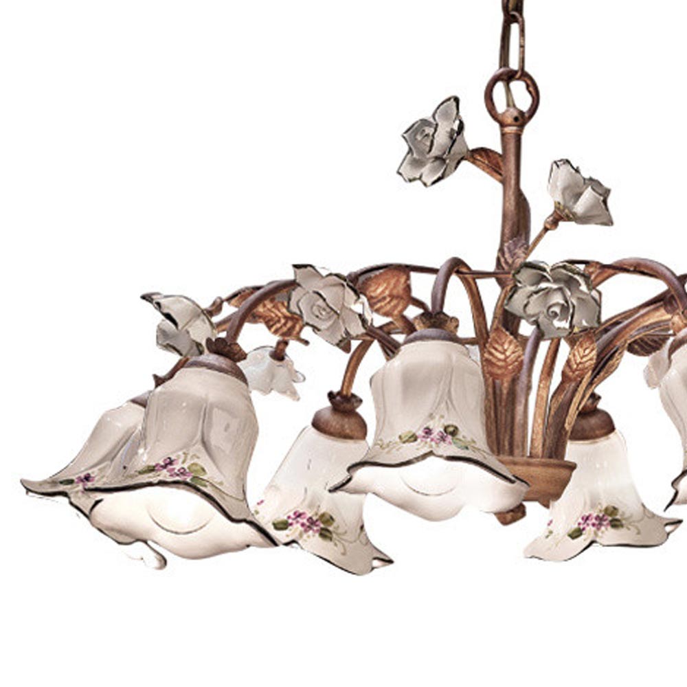 Kronleuchter mit 8 Lichtern aus Metall und handverzierter Keramik und Rosen - Pisa