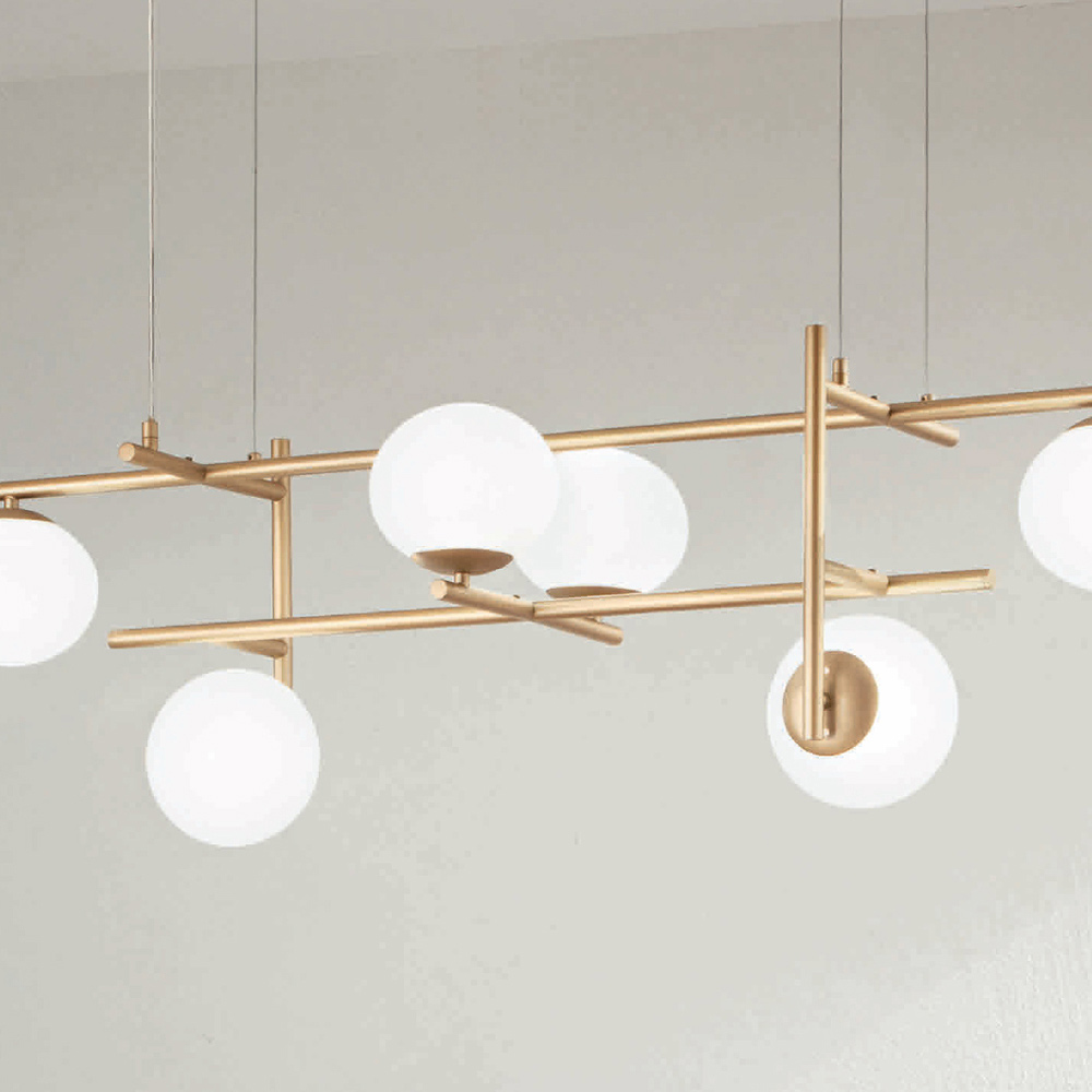lackiertem Metall und mundgeblasenem Glas mit Goldfinish, mit LED-Licht und längenverstellbaren