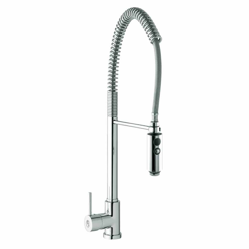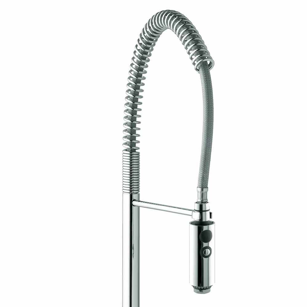 Made in Italy Küchenspüle Mischer aus verchromtem Messing. Funktionalität und Design vereinen sich in diesem wunderbaren Artikel mit einem modernen Geschmack, der dank des einstellbaren Ausgusses mit Feder und der 2-Jet-Dusche für eine einfache und praktische Verwendung ausgelegt ist. Was es einzigartig macht, ist das Vorhandensein einer kartuschendefinierten ES , die kaltes Wasser liefern kann, wenn der Hebel in der Mittelstellung angehoben wird, wodurch die Notwendigkeit von heißem Wasser aus dem Kessel vermieden wird und somit erhebliche Energieeinsparungen ermöglicht werden.