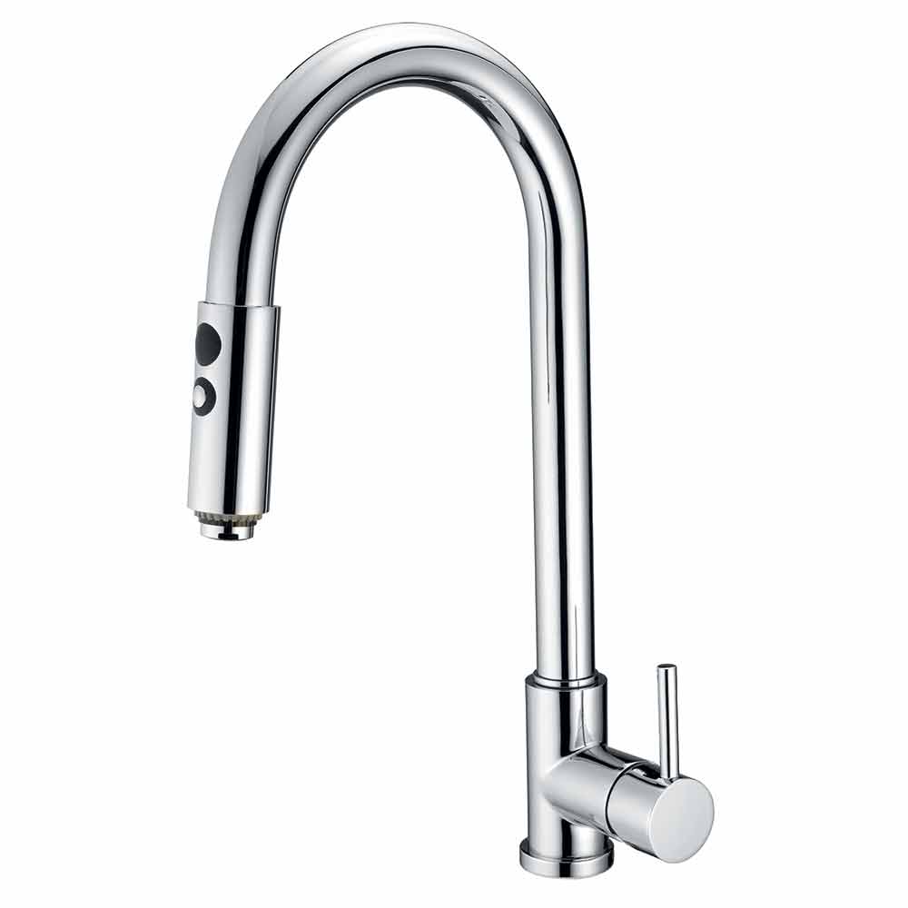 Made in Italy Küchenspüle Mischer aus verchromtem Messing. Funktionalität und Design vereinen sich in diesem wunderbaren Artikel mit einem modernen Geschmack, der dank des verstellbaren Ausgusses mit Feder und der ausziehbaren und verstellbaren 2-Jet-Handbrause für eine einfache und praktische Verwendung ausgelegt ist. Was es einzigartig macht, ist das Vorhandensein einer kartuschendefinierten ES , die kaltes Wasser liefern kann, wenn der Hebel in der Mittelstellung angehoben wird, wodurch die Notwendigkeit von heißem Wasser aus dem Kessel vermieden wird und somit erhebliche Energieeinsparungen ermöglicht werden.