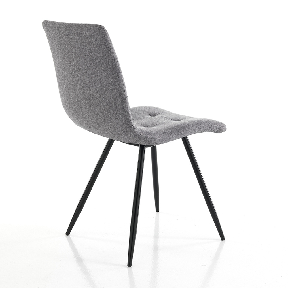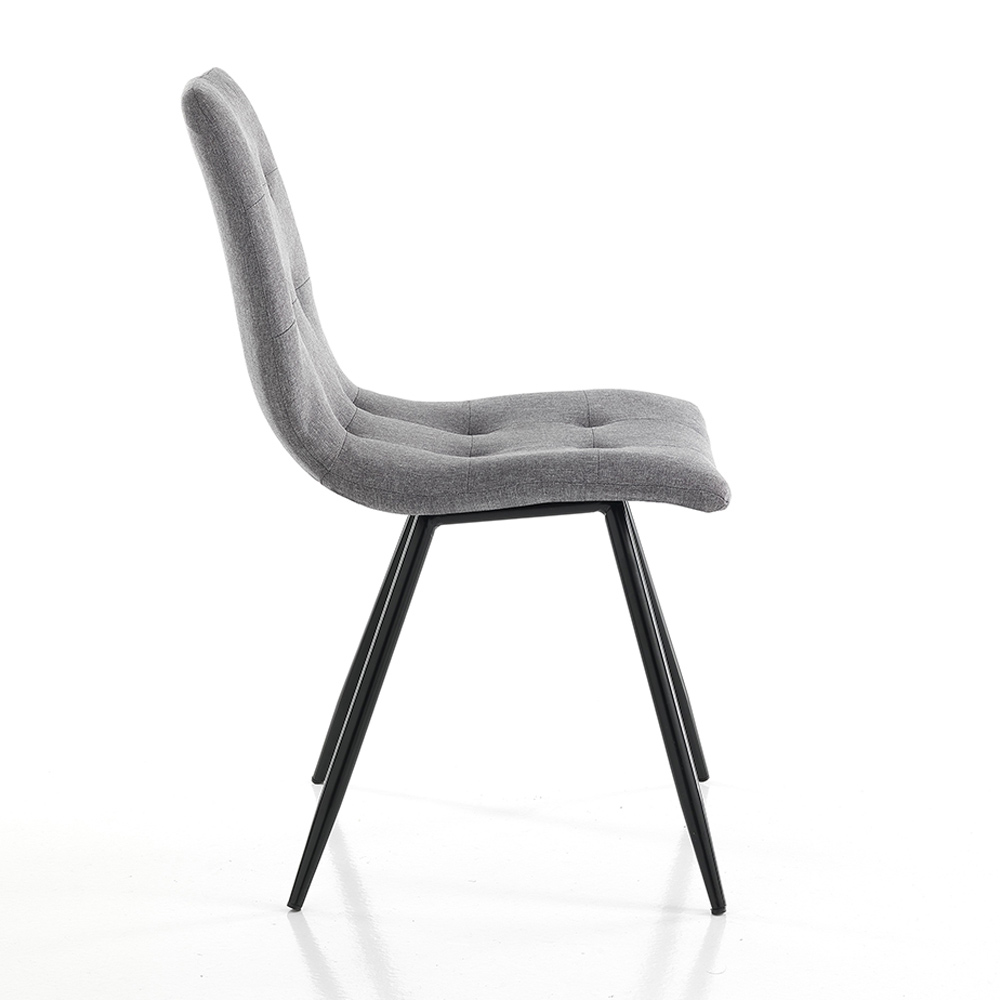 Küchen- oder Esszimmerstuhl mit Beinen aus mattschwarz lackiertem Metall und gepolsterter Sitzfläche mit grauem Stoffbezug . Es lässt sich perfekt mit allen modernen Möbelstilen kombinieren, von den minimalsten bis zu den raffiniertesten, und verleiht dem Raum Eleganz, ohne den Blick vom Esstisch abzuwenden, der den Mittelpunkt der Umgebung darstellt, sondern schafft zusammen mit ihm eine wunderbare Harmonie der Stile für ein originelles Ergebnis, raffiniert und mit einer starken modernen Persönlichkeit .