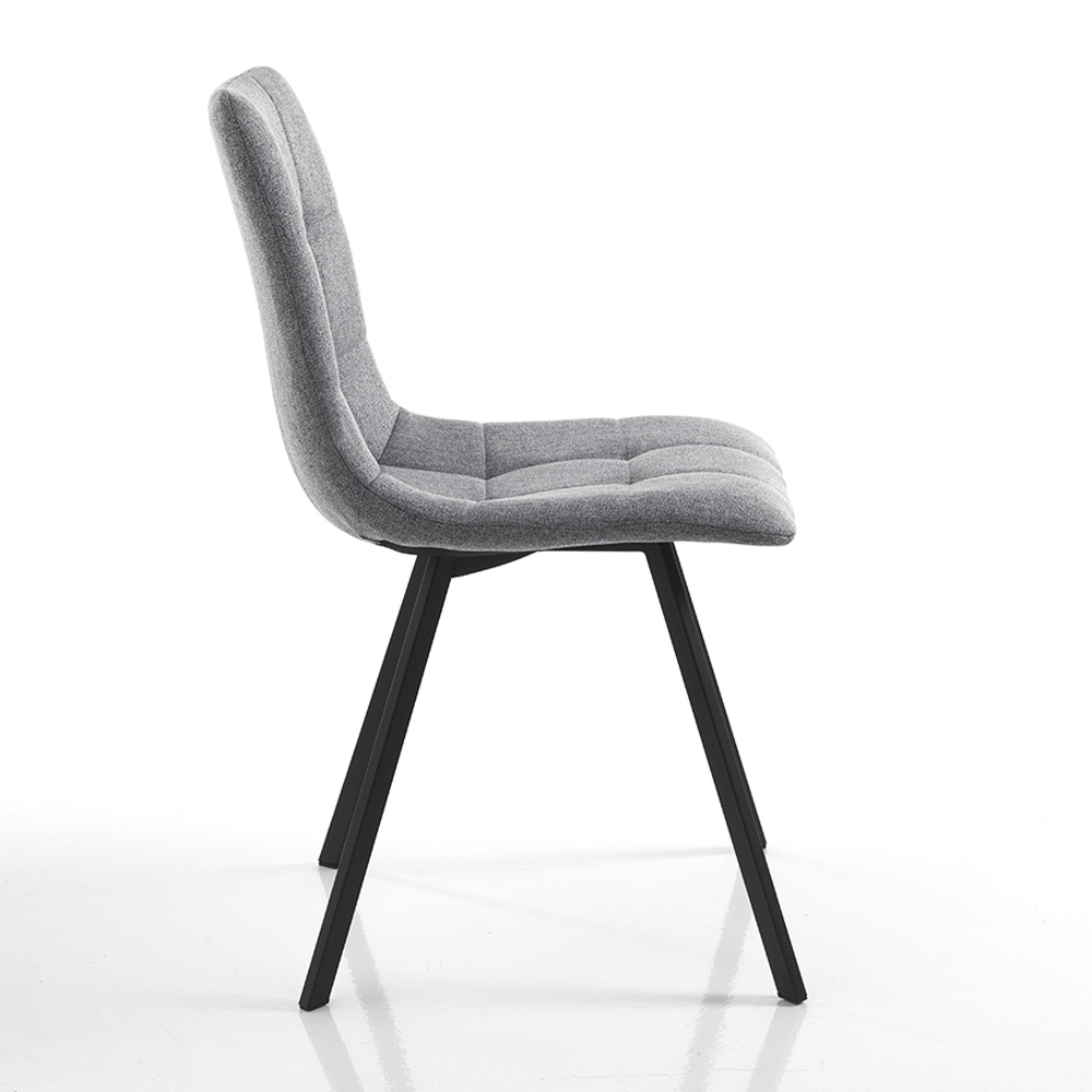Küchenstuhl aus grauem Stoff mit Stahlstruktur, 4 Stück.