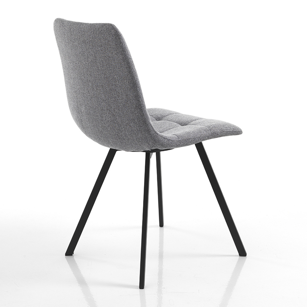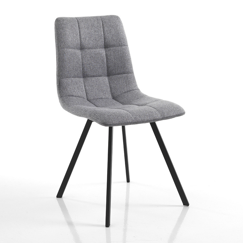 Küchenstuhl mit Gestell aus mattschwarz lackiertem Stahl und Sitzfläche komplett mit grauem Stoff bezogen . Ideal für die Platzierung im Esszimmer und in der Küche, aber auch in Objekten wie Bars und Restaurants dank des eleganten und raffinierten Designs und seiner Vielseitigkeit. Die figurbetonten Formen zusammen mit der weichen Polsterung bieten einen besonders einladenden und bequemen Sitz für wundervolle Momente der Entspannung.