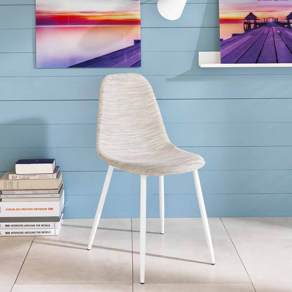 Stuhl mit Metallbeinen. Sitz mit Similrattan bezogen.