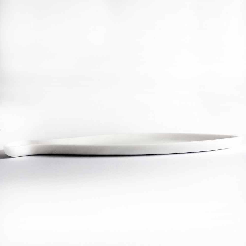 Elegantes und exklusiv geformtes Küchentablett, handgefertigt in Italien aus weißem Carrara-Marmor . Eine Idee von Klasse mit einer originellen Form , die jeden Esstisch auf raffinierte und raffinierte Weise bereichert. Ideal zum Servieren aller Gerichte beim Mittag- und Abendessen mit Freunden, eignet sich seine Form auch perfekt als praktischer Taschenleerer am Eingang oder als einfaches Dekorationselement , das jeden Raum im Haus mit Persönlichkeit bereichert.