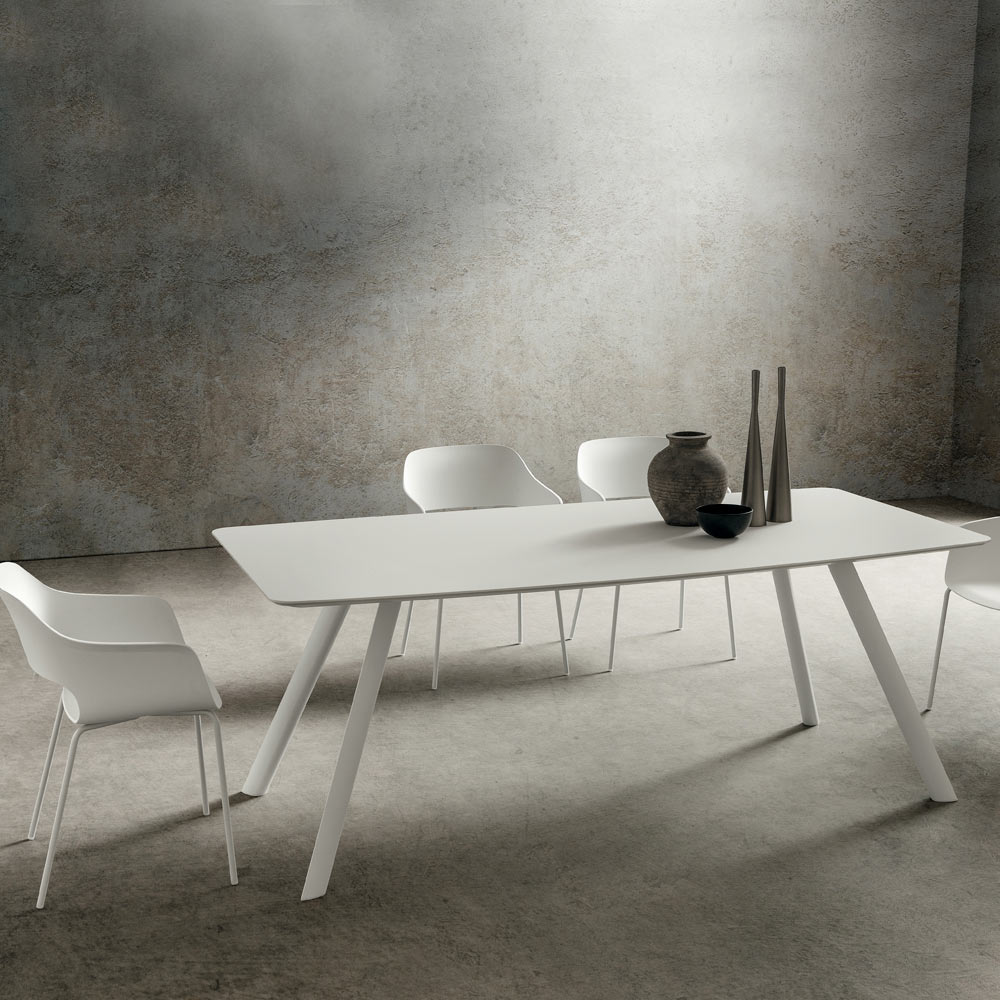 In Italien hergestellter Küchentisch mit Beinen aus epoxidlackiertem Aluminium und Platte aus 1 cm geschichtetem Fenix in Form und von einer MDF- Oberfläche getragen. Schlichtheit und Design sind die besonderen Merkmale dieses Möbelstücks im modernen Stil , das in der Lage ist, jeden Wohnraum mit zeitgenössischem Geschmack auf nüchterne und diskrete Weise zu vervollständigen. Seine Vielseitigkeit wird durch die wunderbaren und zarten Farben gegeben, die ihn zu einem idealen Tisch für diejenigen machen, die einfache Möbel lieben, die nicht unbemerkt bleiben, den Mittelpunkt der Aufmerksamkeit erobern und den wahren Protagonisten im Raum darstellen.