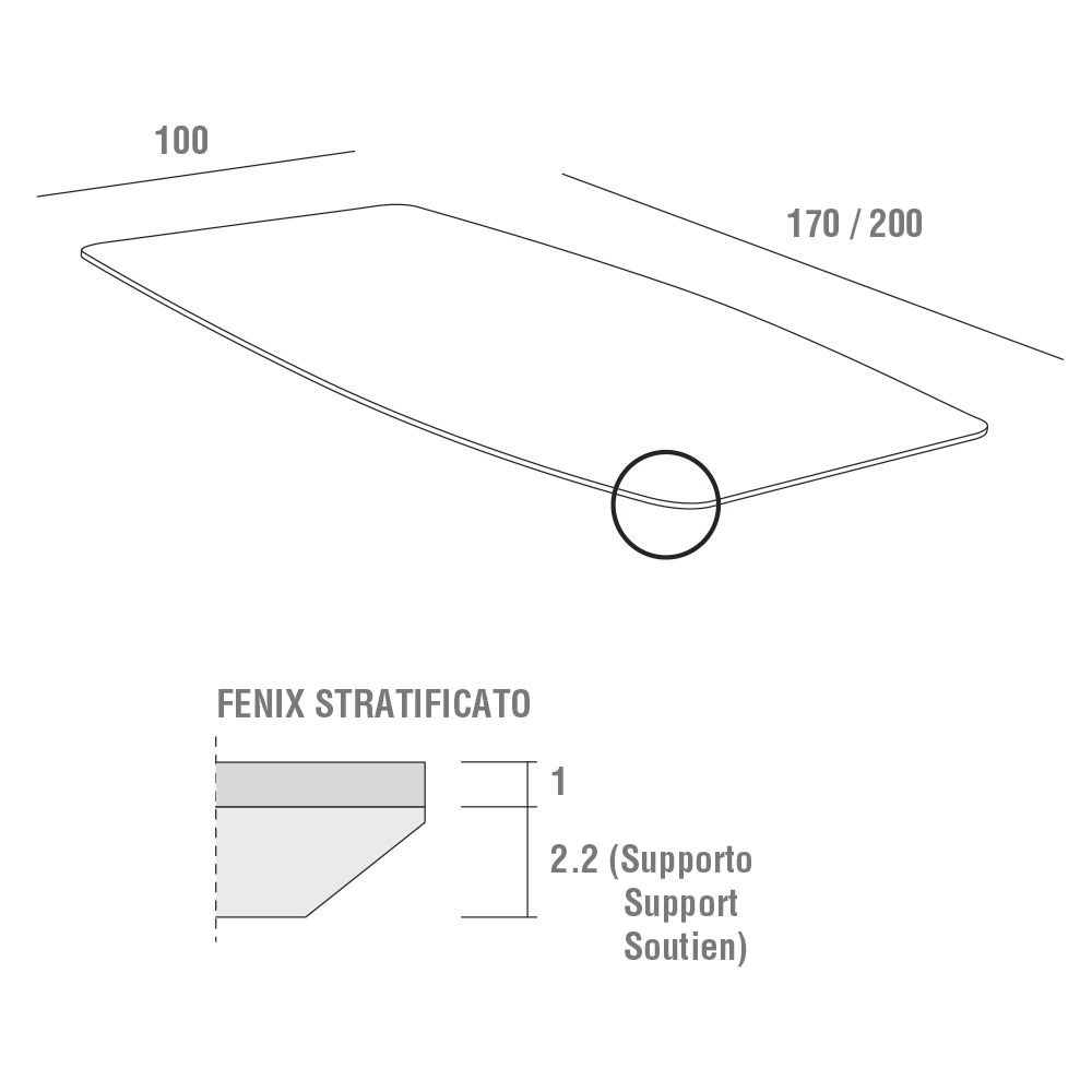 Seine Besonderheit ist die geschichtete Fenix-Platte, ein Material, das durch die Verwendung innovativer Harze entsteht und eine widerstandsfähige, angenehm anzufassende und extrem undurchsichtige Oberfläche bietet , Eigenschaften, die nicht nur die funktionale Seite des Tisches erhöhen, sondern auch seine Raffinesse unterstreichen und vervollständigen Ästhetik, die eine exklusive und elegante Note verleiht.