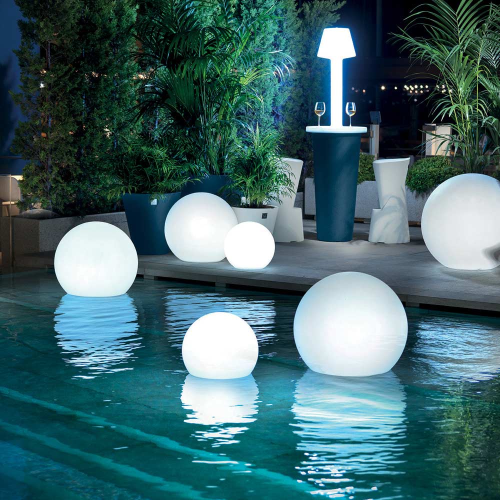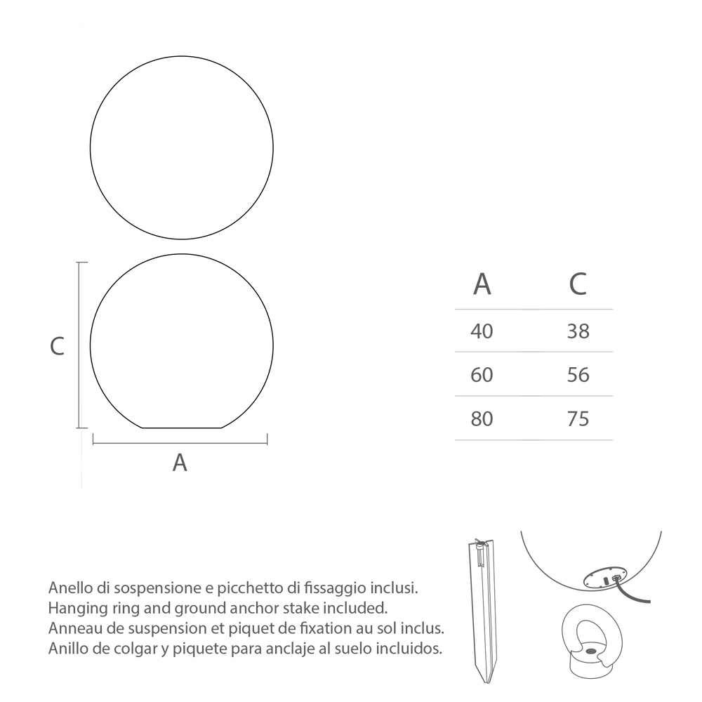 Diese Außenlampe wird vollständig in Italien aus Polyethylen hergestellt, einem hochwertigen Material, das dieses Produkt äußerst stabil und witterungsbeständig macht und sich perfekt für die Platzierung in verschiedenen Außenbereichen eignet. Ein Einrichtungsgegenstand mit kugelförmiger Form, der in verschiedenen Größen erhältlich ist und Ihre Fantasie anregt und Ihnen ermöglicht, mit den unterschiedlichsten und individuellsten Kombinationen zu spielen.