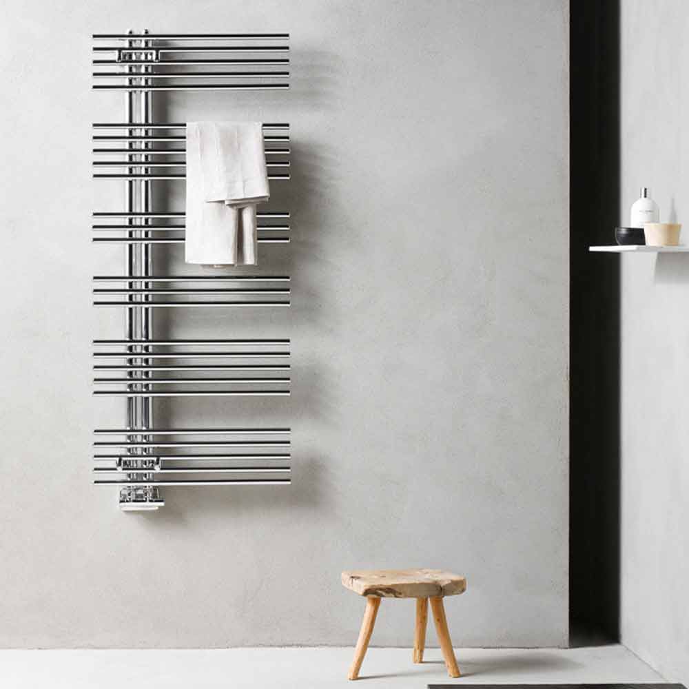 Entwerfen Sie einen hydraulischen Wandhandtuchwärmer aus verchromtem Stahl, hergestellt in Italien.